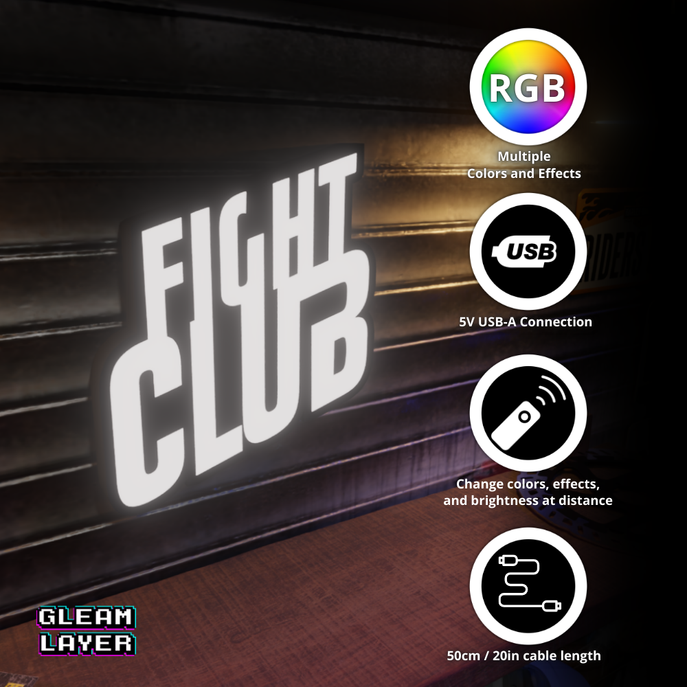 Fight Club LED sign, Fight Club movie wall light, cult classic film LED decor, Tyler Durden illuminated sign, movie collectible LED wall art, home theater LED display, film buff room lighting, iconic movie lightbox, Fight Club memorabilia light, cinematic LED wall decor