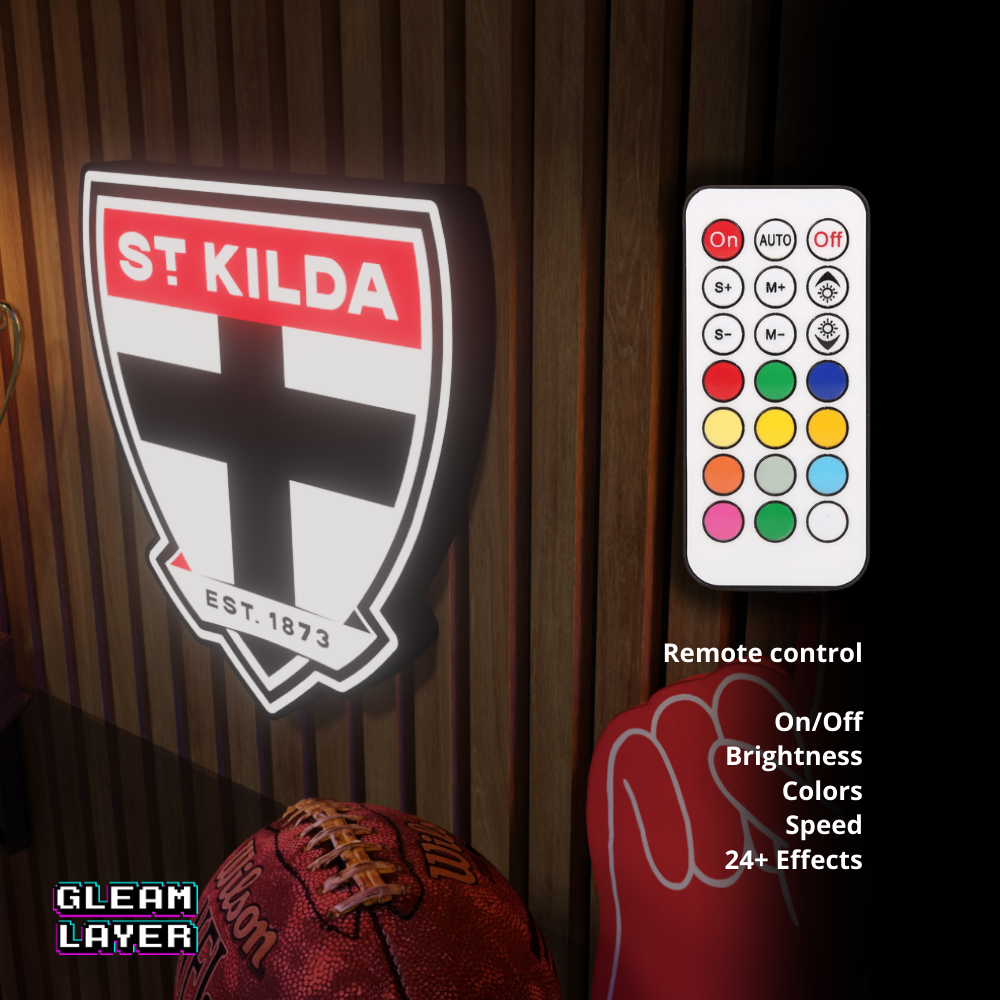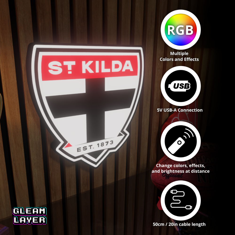 Shine bright for footy with the St Kilda Saints AFL Logo LED RGB Wall Display Light Sign — a glowing centerpiece for fans, collectors, and AFL-inspired rooms!