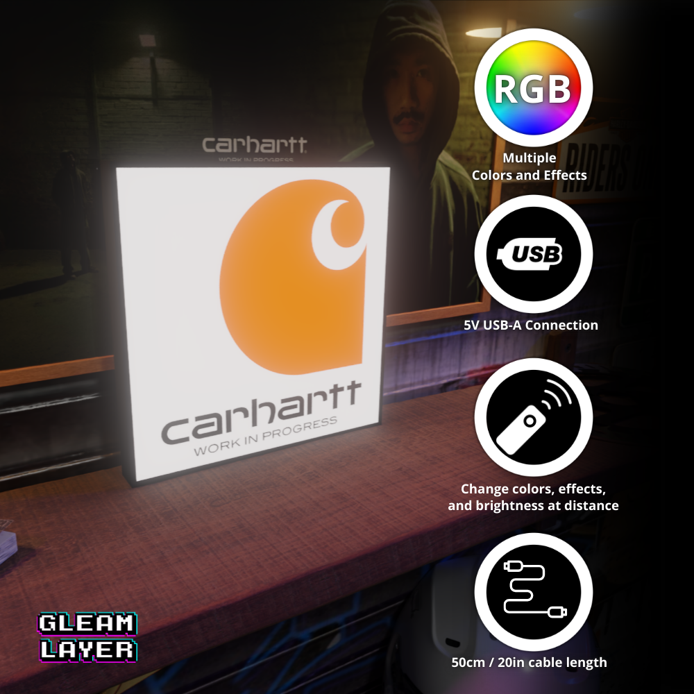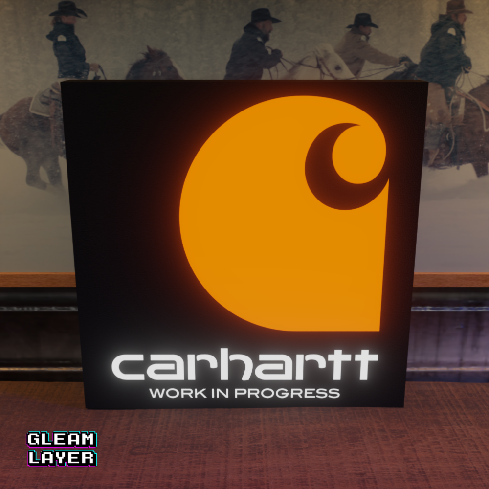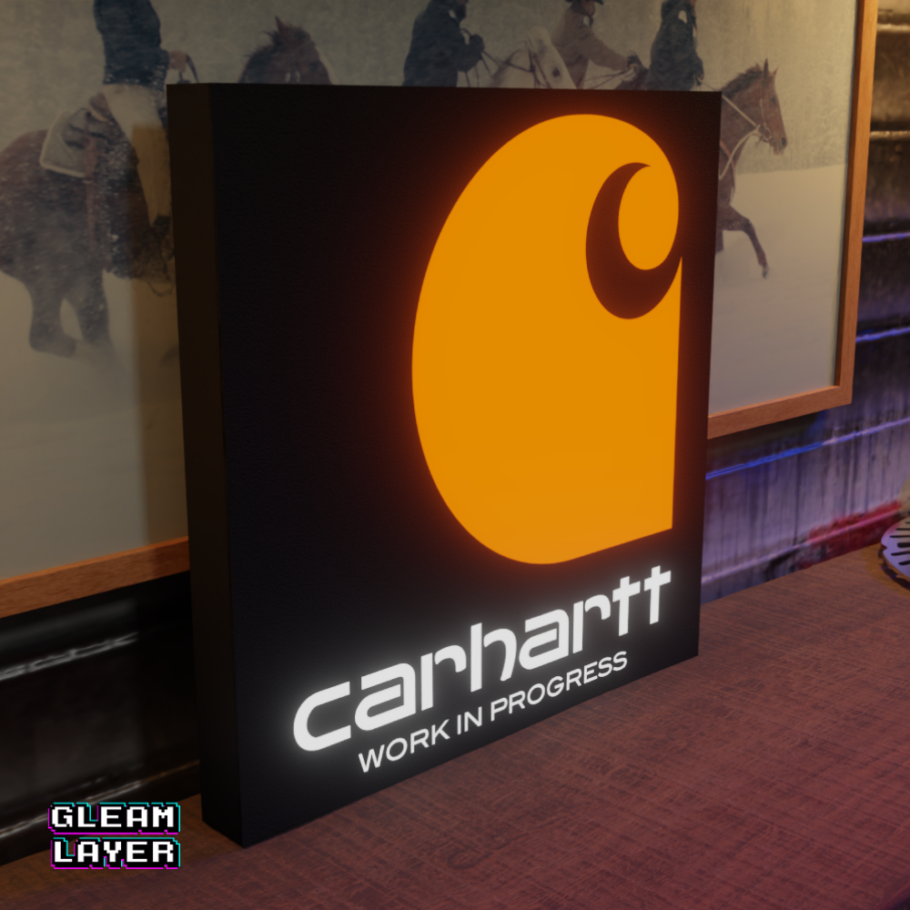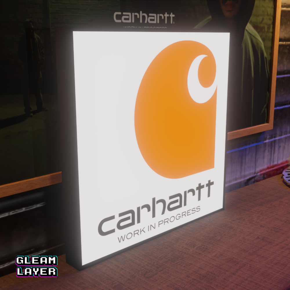 Carhartt LED sign, Carhartt brand wall light, workwear fashion illuminated sign, Carhartt logo LED lightbox, fashion brand LED wall art, apparel store display light, urban fashion collectible LED decor, streetwear brand illuminated sign, Carhartt room light, man cave brand lightbox