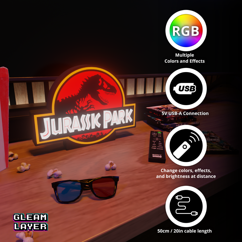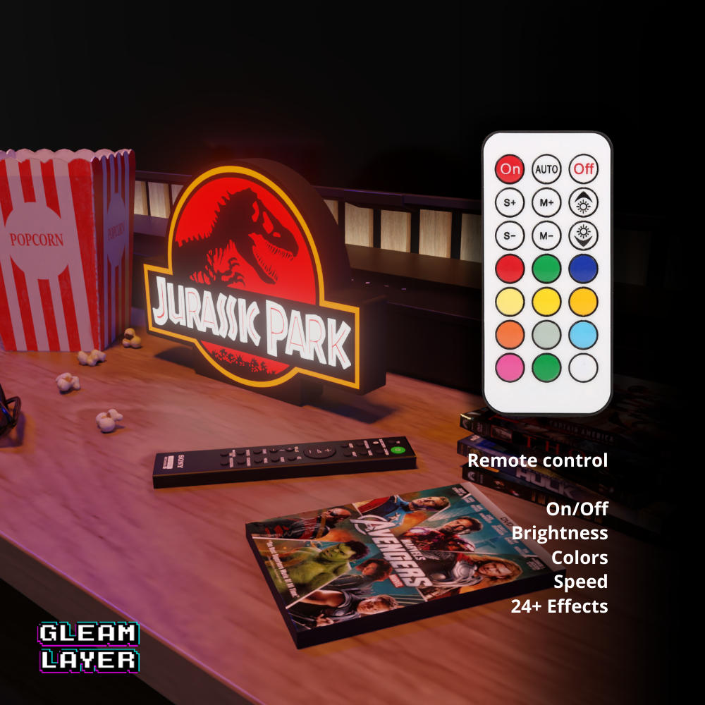 (Jurassic Park LED light, dinosaur-themed decor, movie-inspired memorabilia, USB-powered light sign, remote-controlled LED decor, iconic movie wall sign, adjustable brightness light, collector's item for movie enthusiasts, prehistoric film-inspired decor, LED room feature for fans, unique lightbox for classic movies, nostalgic cinema memorabilia, home decor for film lovers, USB LED light for themed rooms, gift for Jurassic Park fans, movie room decor, custom lighting for movie buffs, dinosaur movie light sign, collectible LED decor, prehistoric room feature)