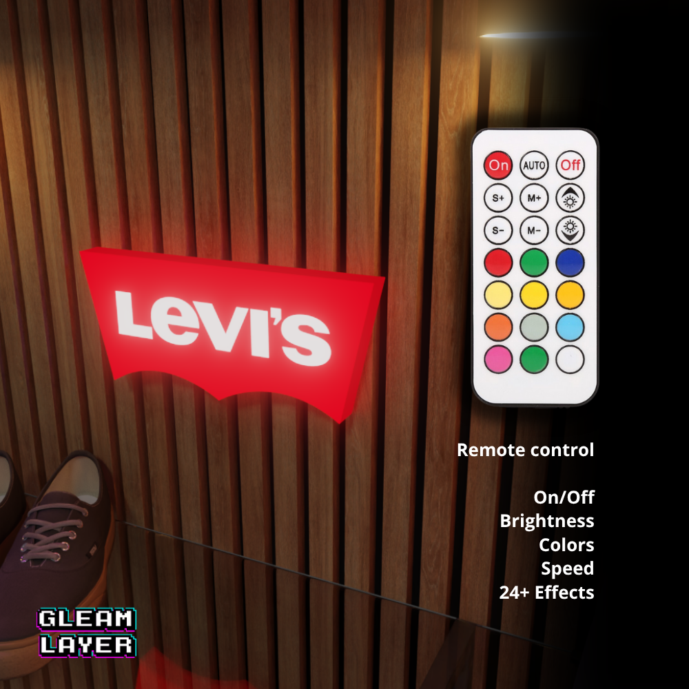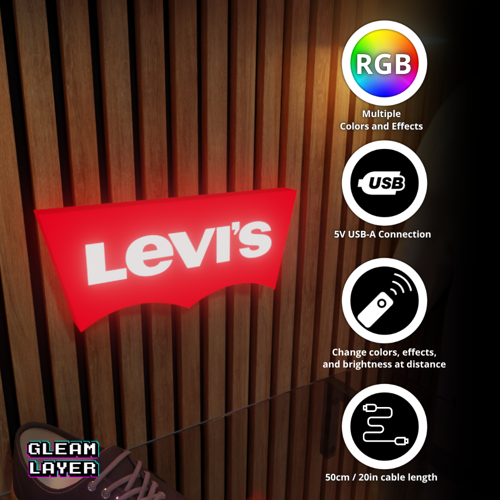 Levi’s LED RGB sign, Levi’s brand decor, Levi’s illuminated sign, Levi’s wall light, Levi’s LED wall sign, Levi’s RGB logo light, Levi’s denim brand lightbox, fashion brand LED sign, RGB lightbox decor, denim lover gift, clothing store LED display, Levi’s advertising sign, man cave LED sign, gamer room light decoration, fashion boutique LED wall art, collectible brand sign, jeans store LED light, apparel shop decoration, retail display illuminated sign, customizable RGB light for home decor