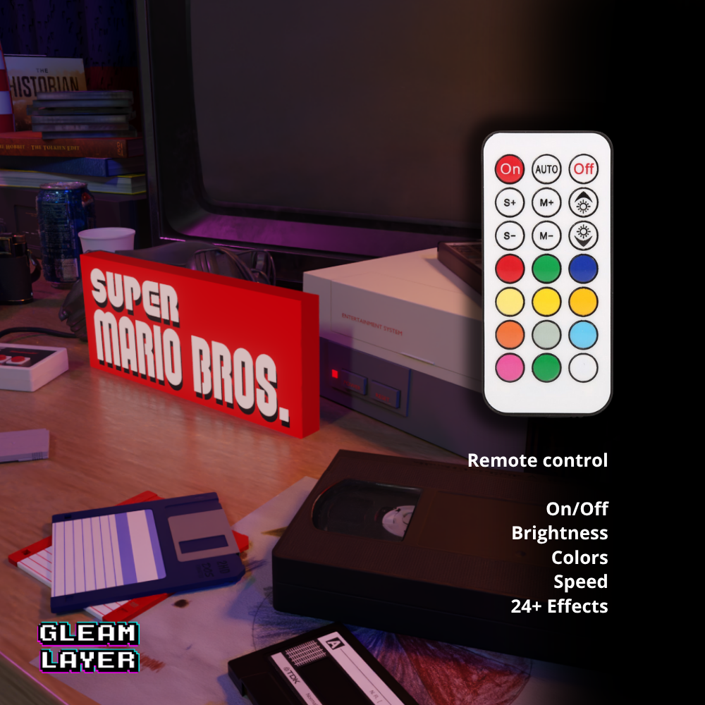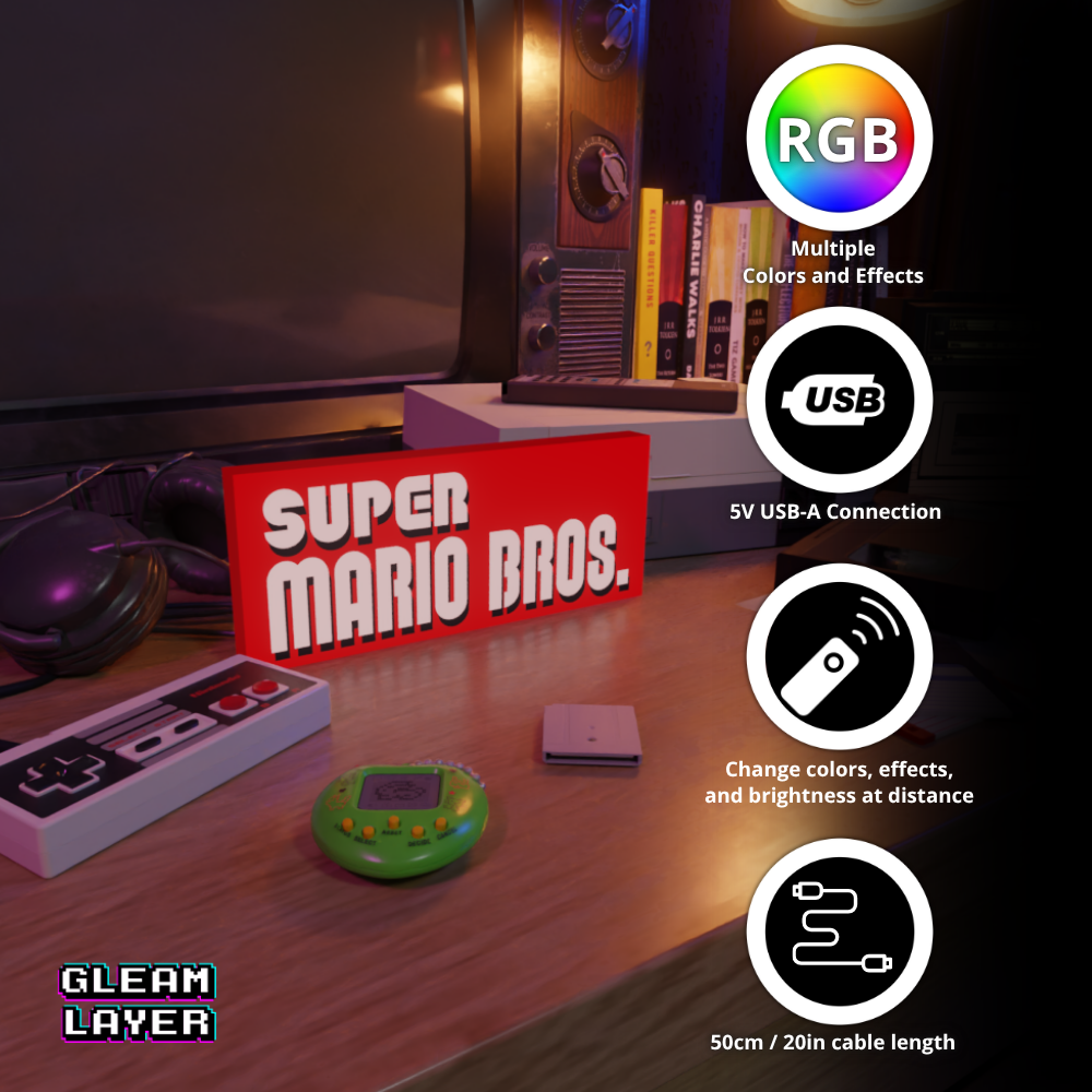 Super Mario Bros LED RGB Light Sign, Nintendo lightbox decor, retro gaming light, 8-bit gamer sign, Super Mario collector gift, gaming room lighting, man cave LED sign, NES memorabilia, classic game art