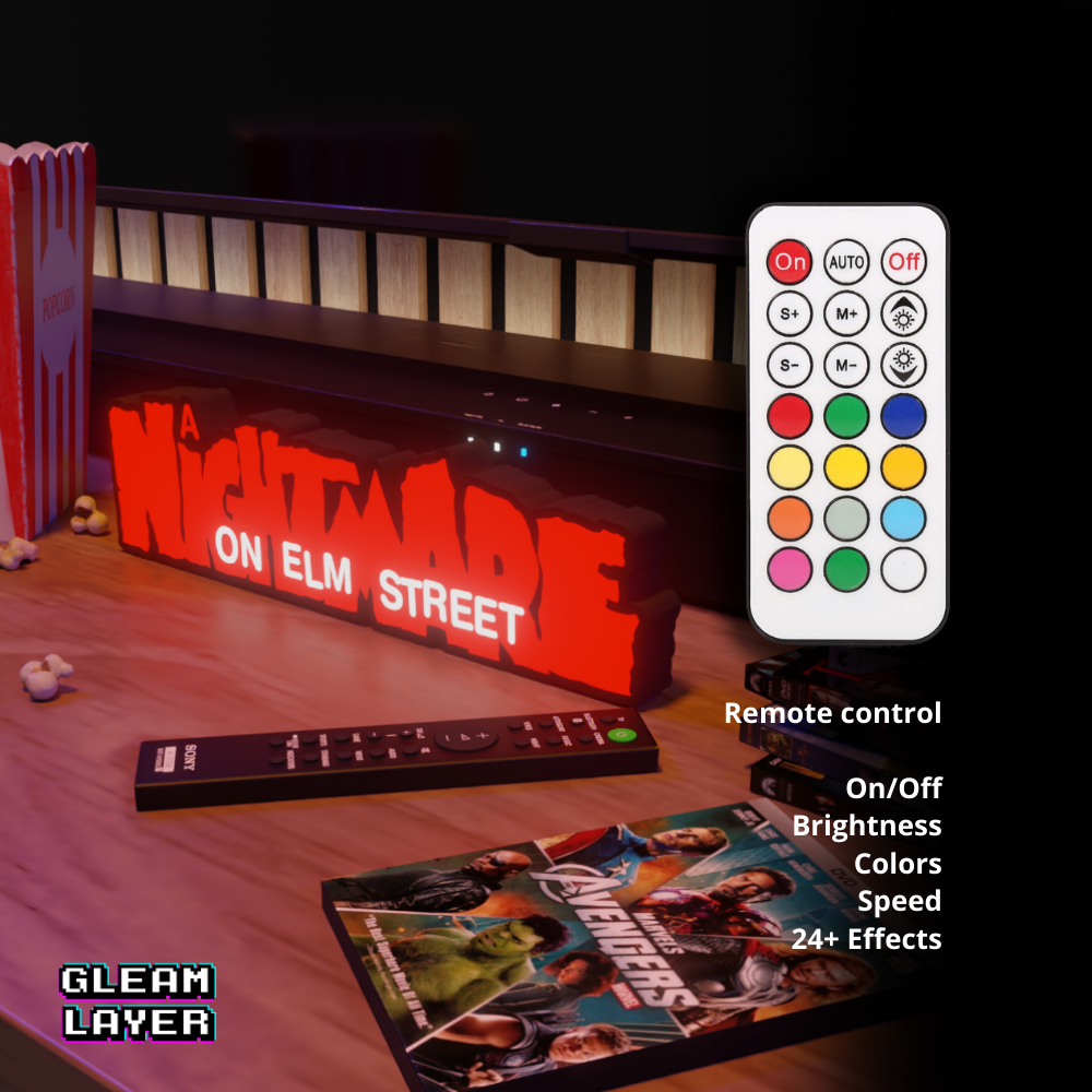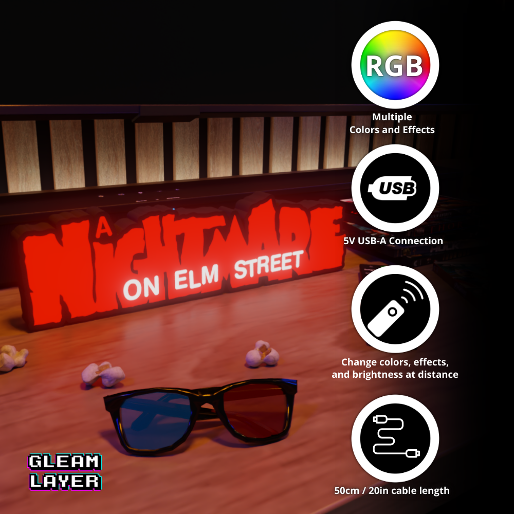 Nightmare on Elm Street LED sign, Freddy Krueger LED light, horror movie LED wall sign, 80s slasher decor, Halloween wall light, home theater LED sign, horror room decor, scary movie lightbox, horror memorabilia illuminated sign, Elm Street collectible light