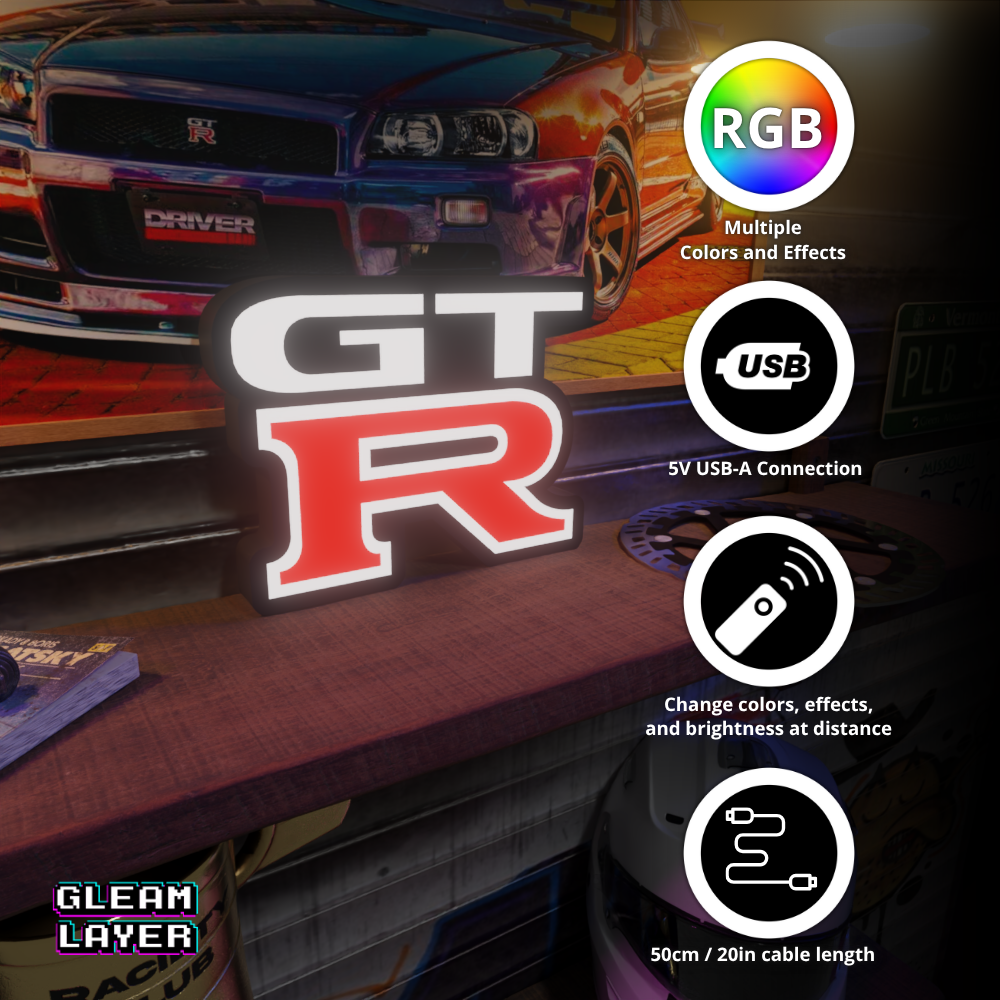 Nissan GTR LED Lightbox, RGB Car Wall Sign, Japanese Tuning Icon, Garage Man Cave Decor, Custom Racing Collector Gift