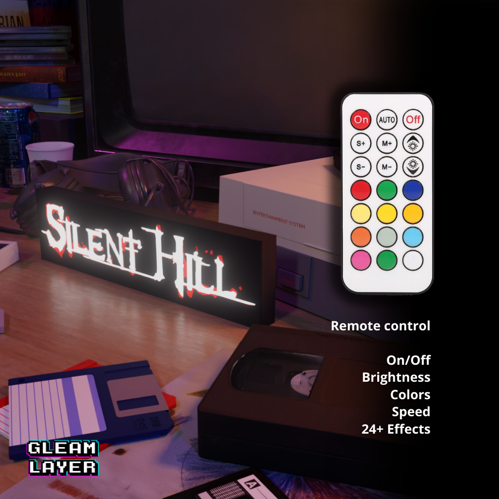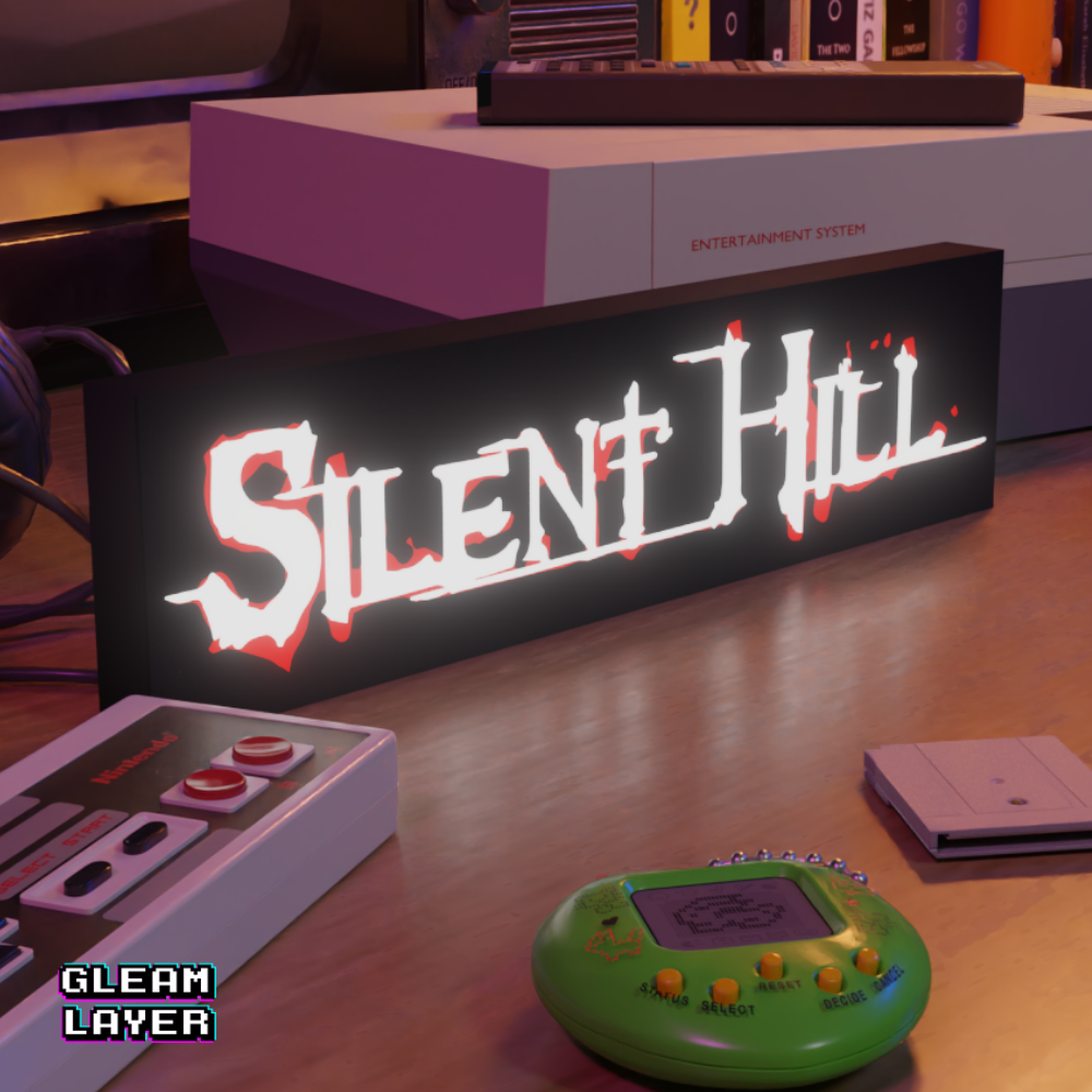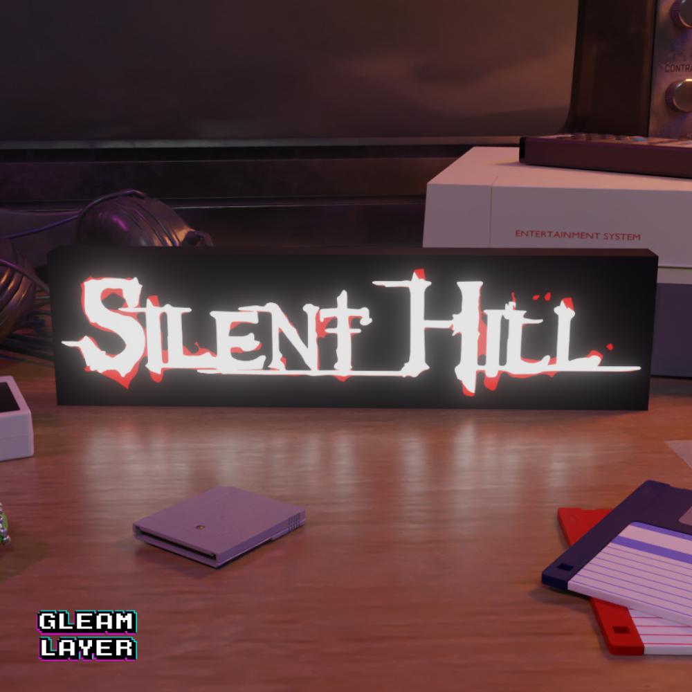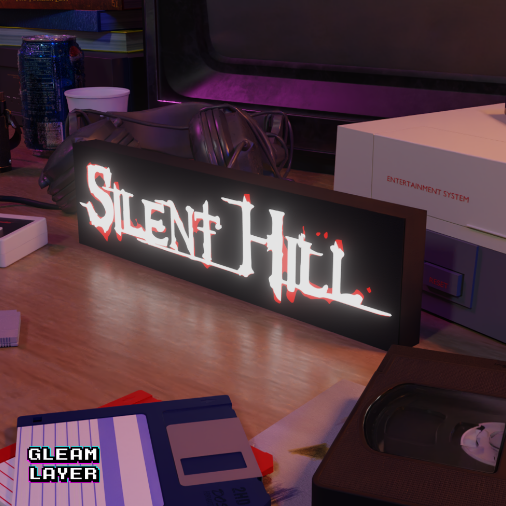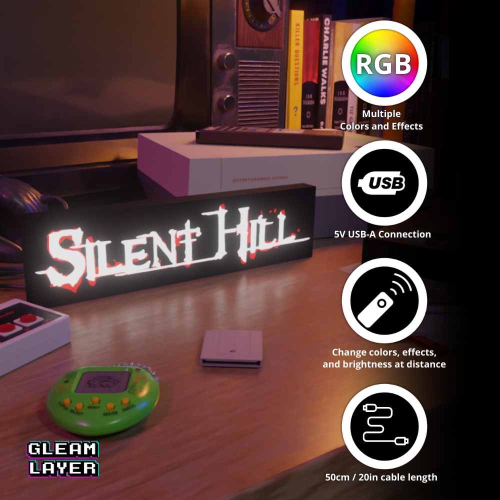 Silent Hill Classic LED light sign, retro survival horror game lightbox, gaming wall decor, collectible Silent Hill illuminated logo, horror gamer room LED display, man cave gaming lighting, iconic video game wall sign, retro horror memorabilia LED