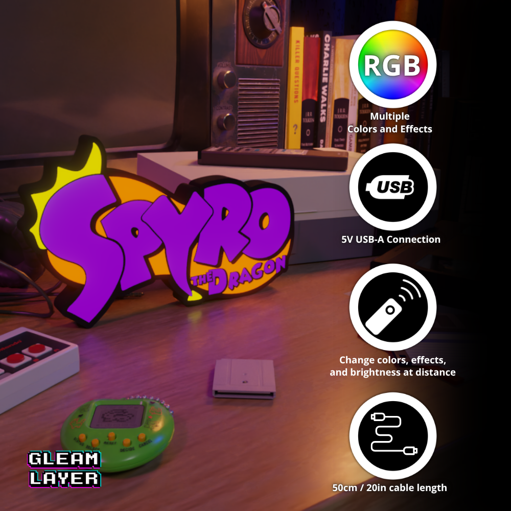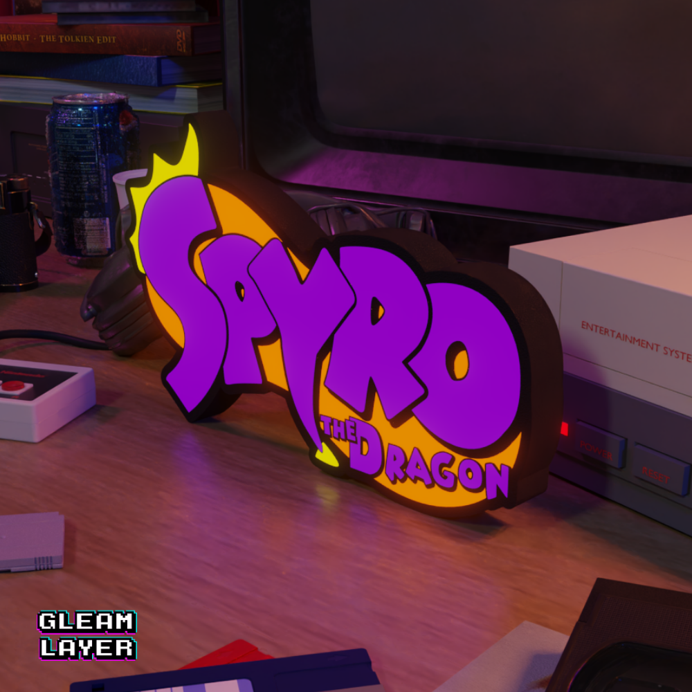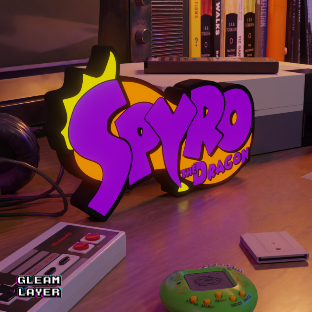Bring the fiery magic of classic PlayStation nostalgia to your setup with the Spyro The Dragon LED Retro Logo Gaming Light Sign — a must-have for fans of the legendary purple dragon!