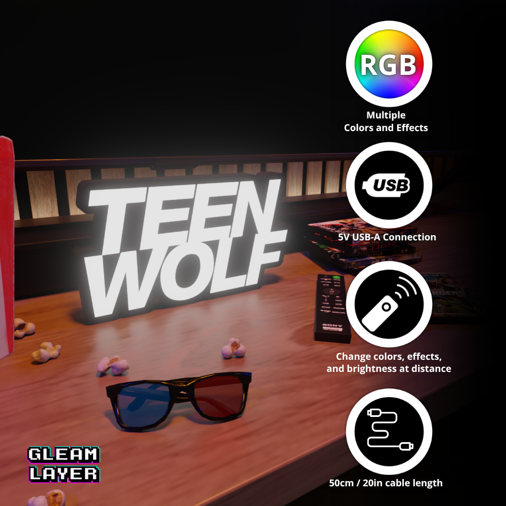 Teen Wolf LED Light Sign, RGB gaming light, supernatural series decor, Teen Wolf fan gift, lightbox for werewolf lovers, gaming room light, fandom wall sign, man cave decoration, teen drama memorabilia, MTV series collectible
