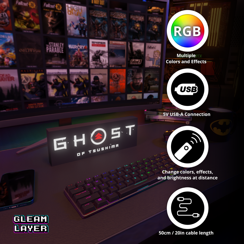 (Ghost of Tsushima LED sign, gaming light sign, samurai gaming decor, PlayStation exclusive memorabilia, Ghost of Tsushima collectibles, gaming room decor, LED gamer sign, USB-powered gaming light, game-inspired room feature, LED wall light for Ghost of Tsushima fans, samurai-themed gaming setup, unique gamer gifts, immersive game room lighting, feudal Japan gaming decor, Ghost of Tsushima wall art, gaming station LED decor, gift for PlayStation fans, light for gaming room, Jin Sakai-inspired decor, Ghost of Tsushima epic journey light, samurai warrior collectibles, stealth and action game decor)