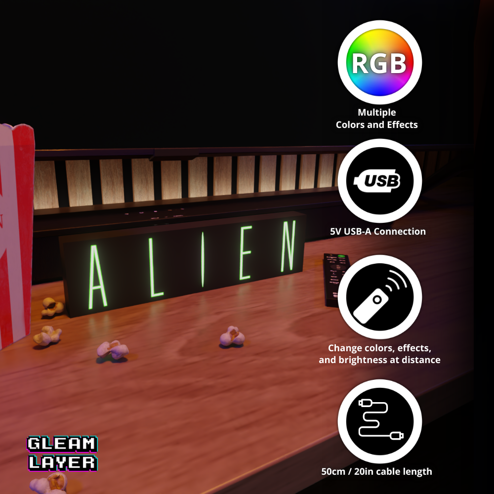 Alien LED Light Sign, Sci-Fi Horror Wall Lamp, Nostalgic Movie Room Decor, Retro Horror LED Display, Gamer Man Cave Light, Collectible Movie Memorabilia, Xenomorph Themed LED Glow, Sci-Fi Fan Gift, RGB Alien Lightbox, Streamer Background Decor, Classic Horror Movie Light, Space Horror Wall Art, 80s Sci-Fi LED Display, Personalized Alien Movie Light, Nostalgic Film LED, Gamer LED Accessories, Cinematic LED Sign for Fans