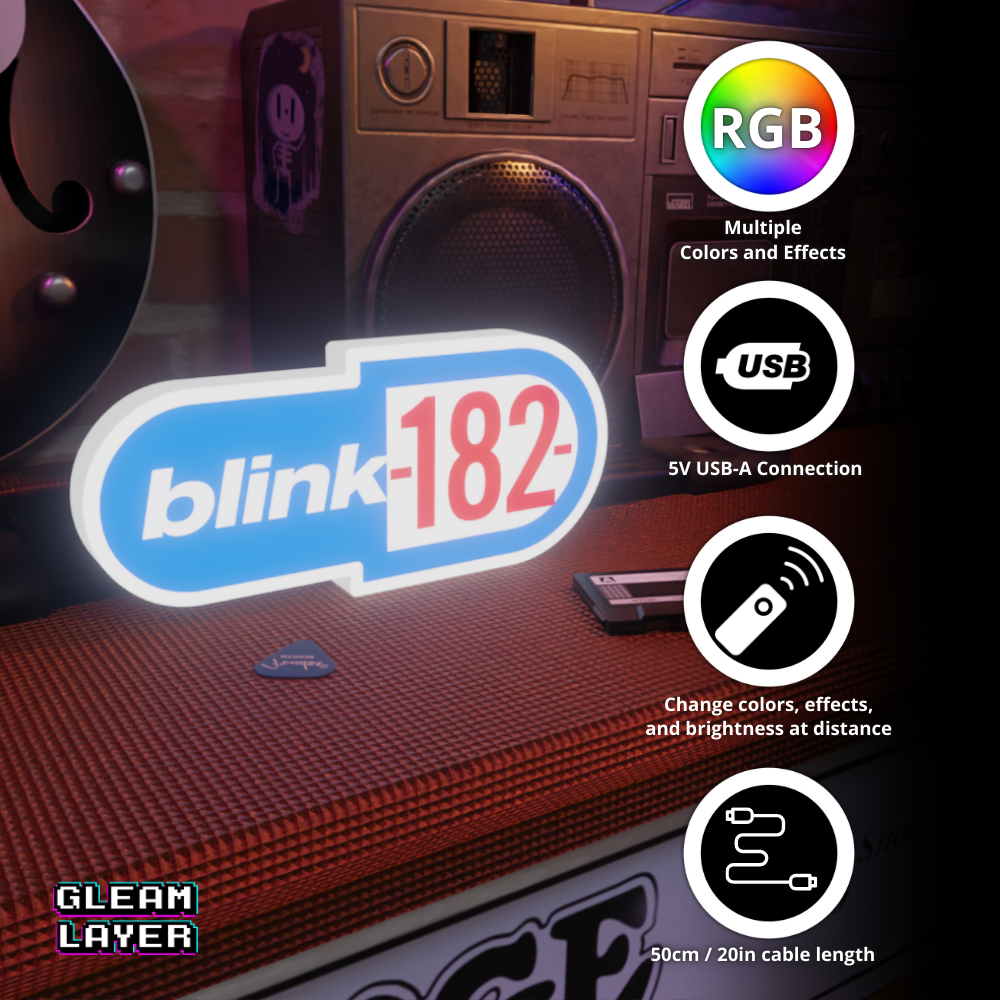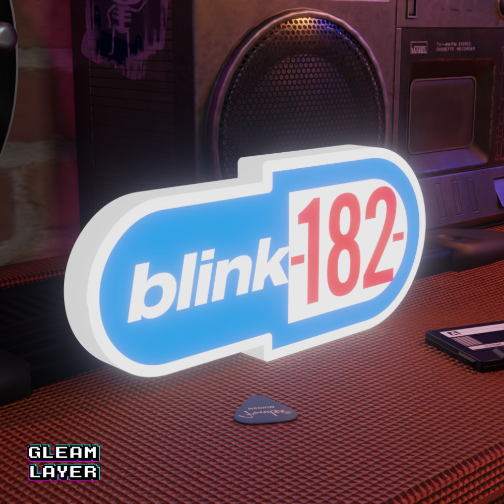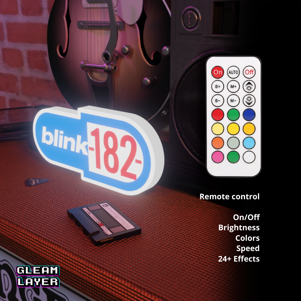 Blink-182 LED RGB light sign, Blink-182 old logo illuminated sign, classic Blink-182 wall light, pop-punk LED wall sign, Blink-182 fan room decor, Blink-182 collectible light, band merchandise LED wall art, punk rock shop display light, nostalgic Blink-182 LED design, early 2000s Blink-182 lightbox, gamer room LED accent, man cave band light, customizable RGB Blink-182 sign, concert-inspired LED lightbox, pop-punk band wall decoration