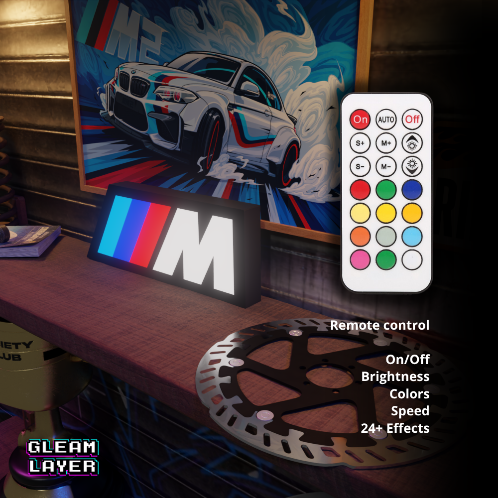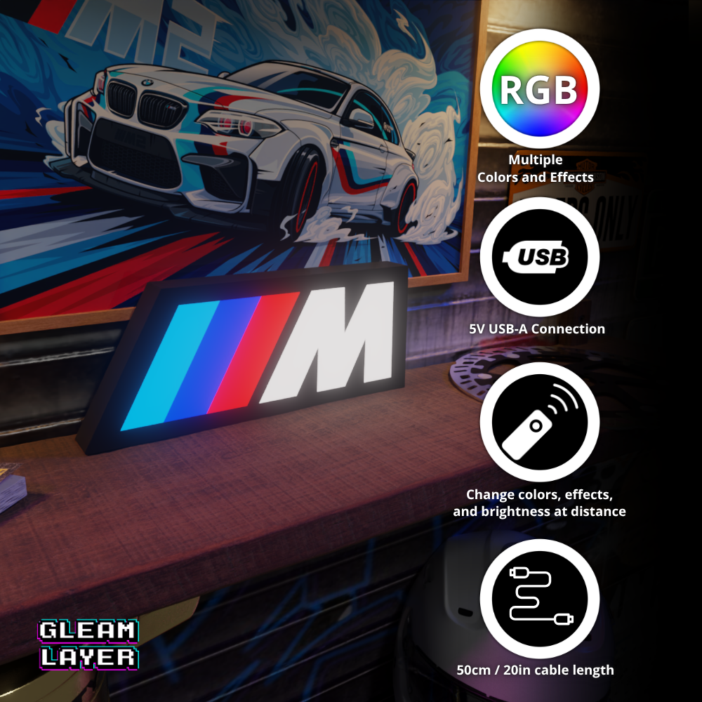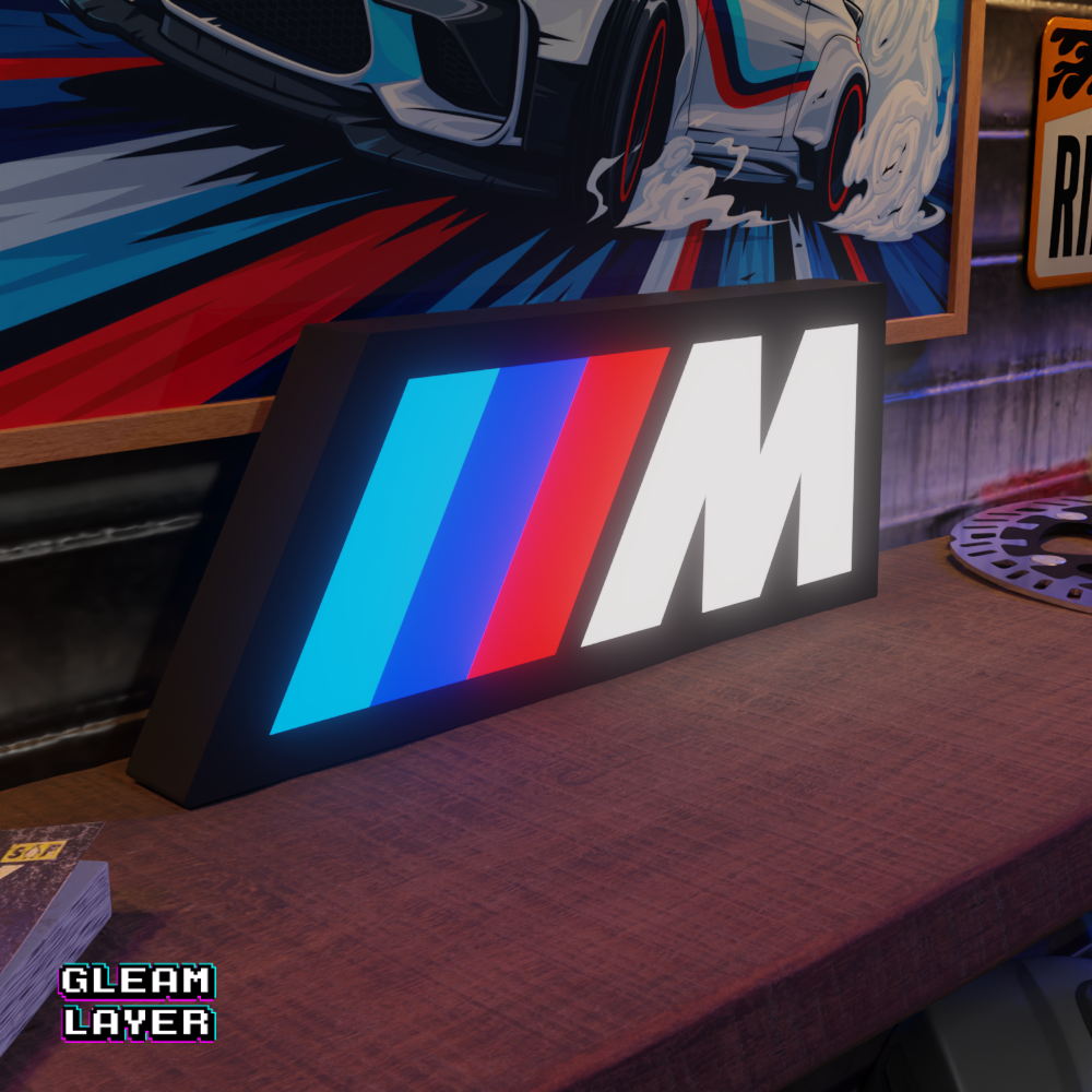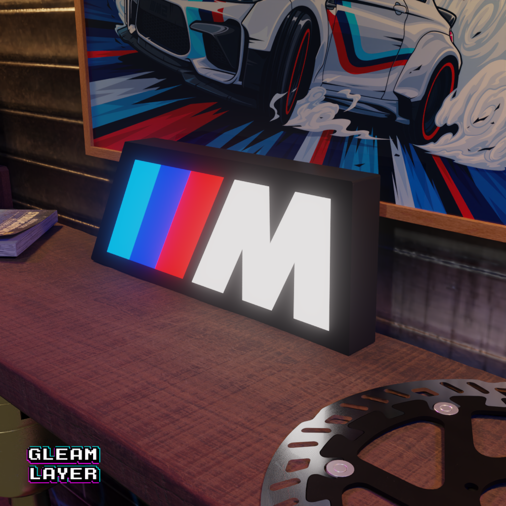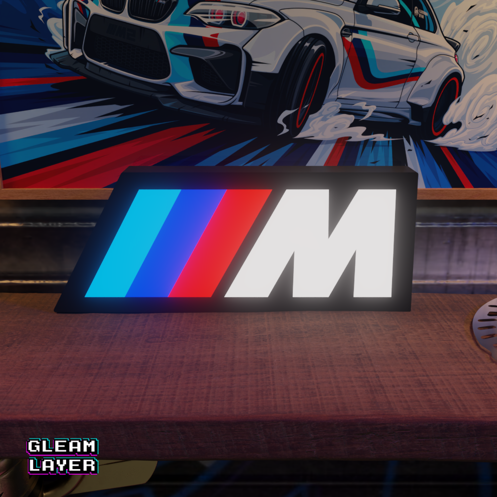 BMW M Series LED Lightbox, Motorsport RGB Light Sign, Car Enthusiast Decor, Garage Wall Art, Gleam Layer Custom LED, Automotive Brand Lighting, Car Collection Gift, Racing Inspired Lightbox, Tuned Car Setup Sign, BMW Fan Light