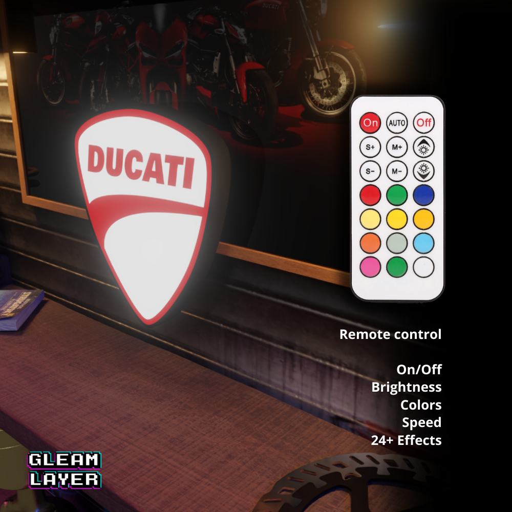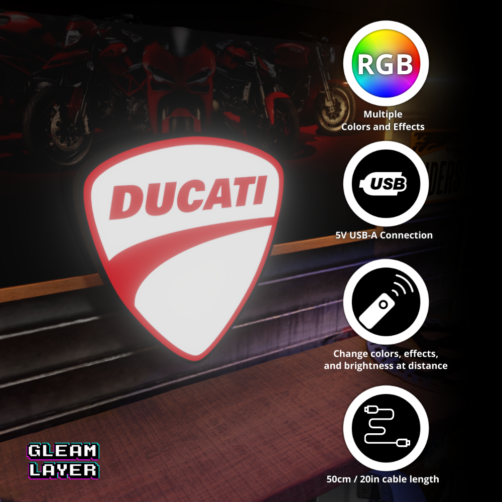 Ducati LED light sign, Ducati motorcycles logo wall display, biker garage LED RGB light, motorcycle enthusiast decor, superbike illuminated sign, Ducati collectible lightbox, motorcycle man cave decor, motorbike shop LED sign, Ducati racing garage wall light