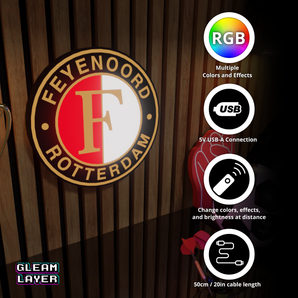 Bring the energy of De Kuip into your room with the Feyenoord Rotterdam Logo LED RGB Wall Display Light Sign — a must-have for passionate Feyenoord fans, collectors, and the perfect game day accent for any man cave or sports lounge!