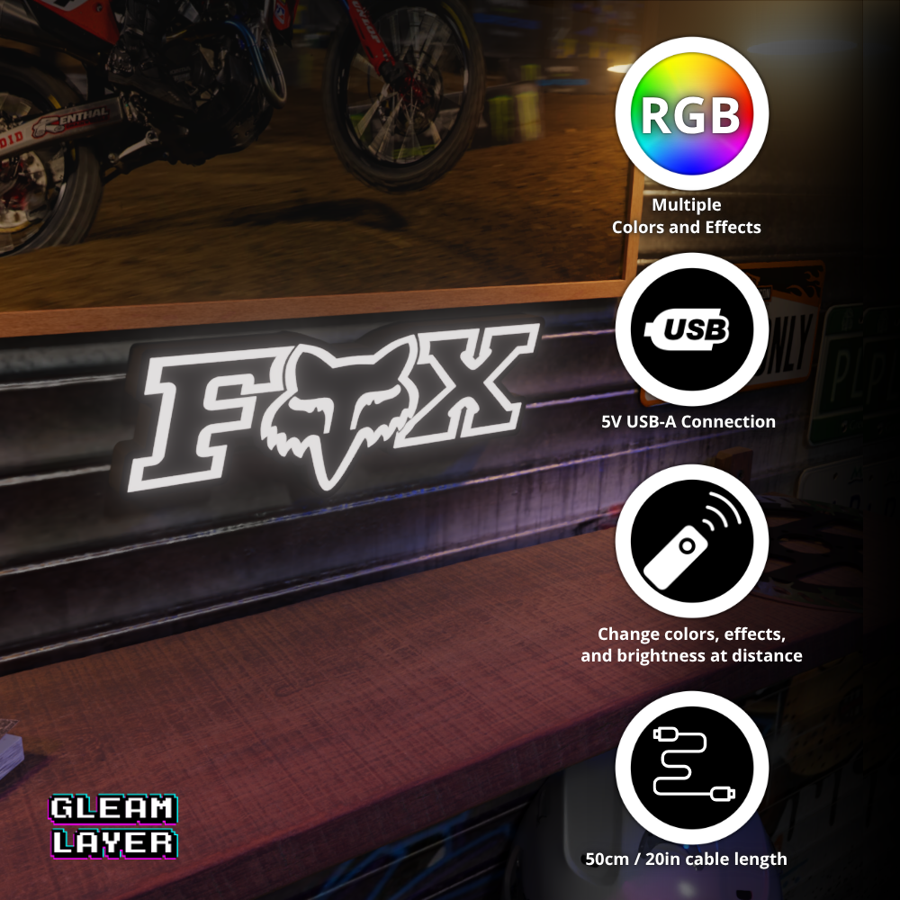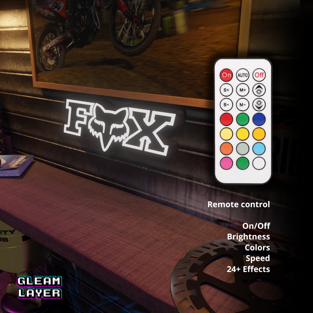 Fox Racing Logo LED RGB Light Sign, Motocross Garage Wall Decor, Dirt Bike Fan Gift, Racing Room Lighting by Gleam Layer