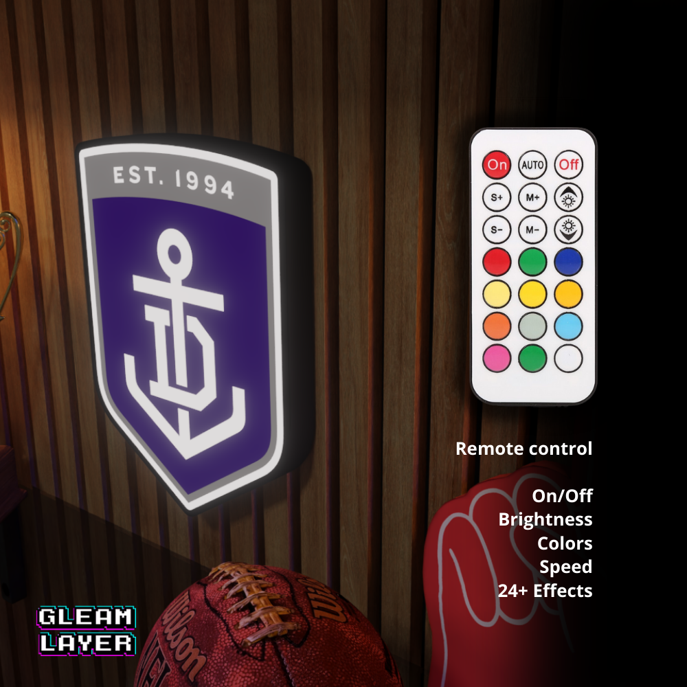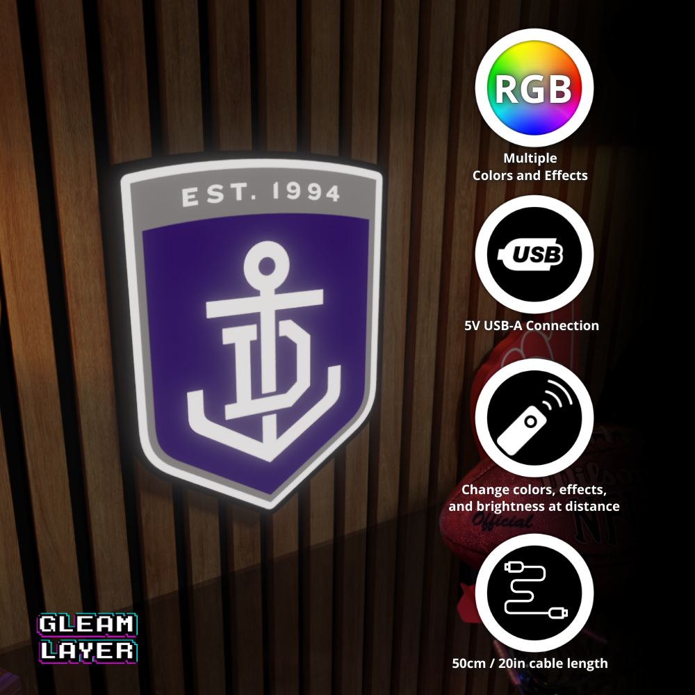 Dive into footy spirit with the Fremantle Dockers AFL Logo LED RGB Wall Display Light Sign — a glowing centerpiece for loyal fans, collectors, and AFL-inspired rooms!