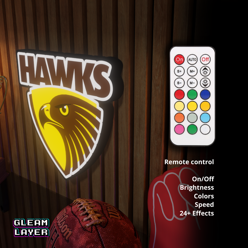 Soar into footy excitement with the Hawthorn Hawks AFL Logo LED RGB Wall Display Light Sign — a glowing centerpiece for loyal fans, collectors, and game day rooms!