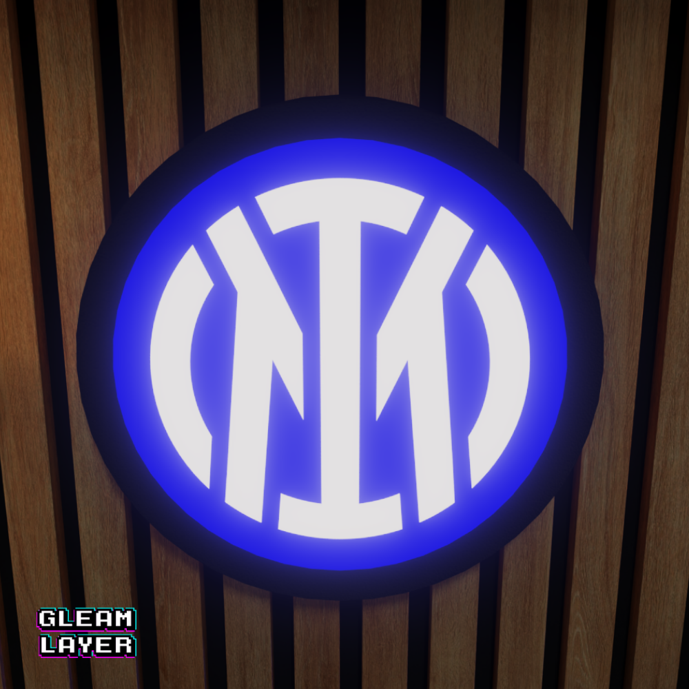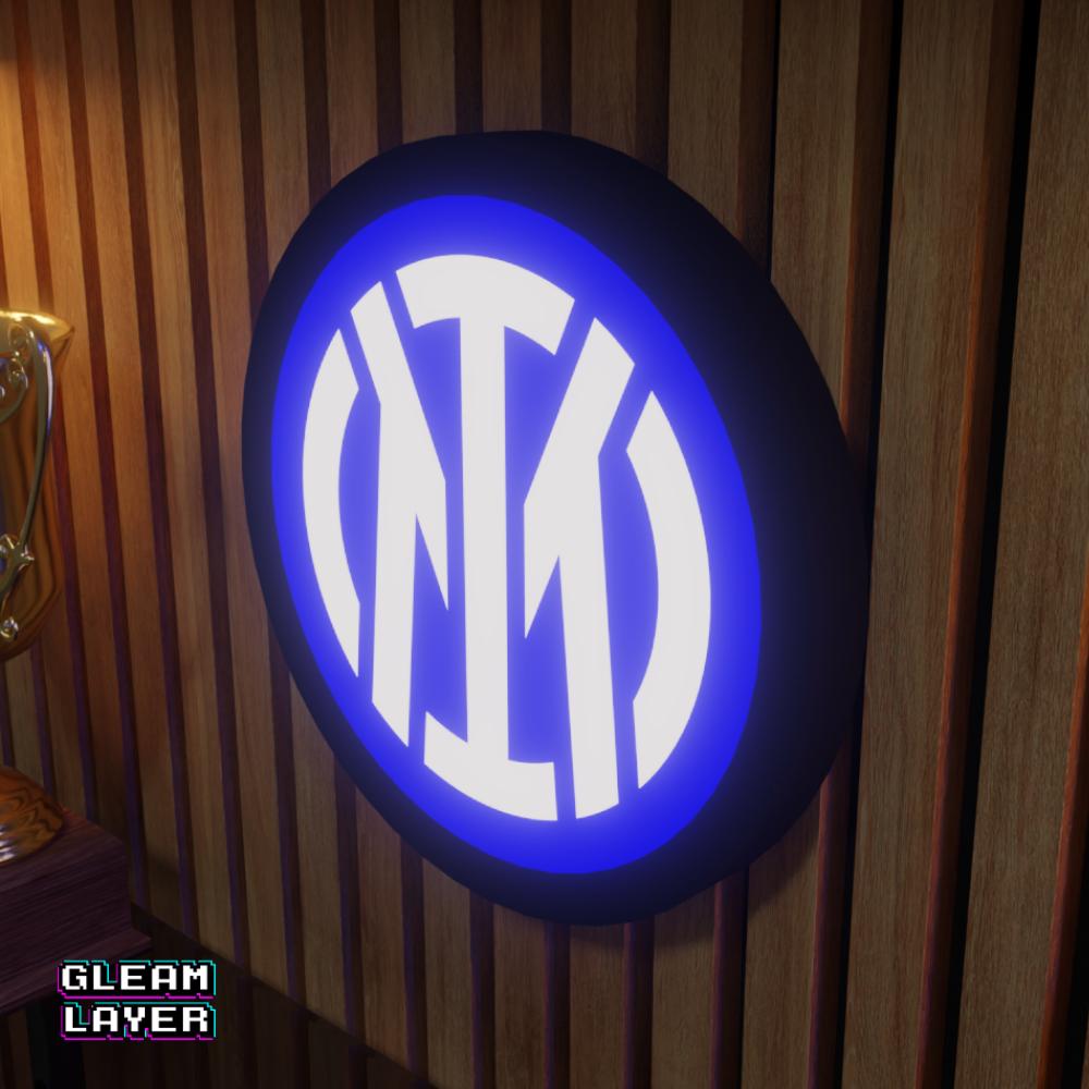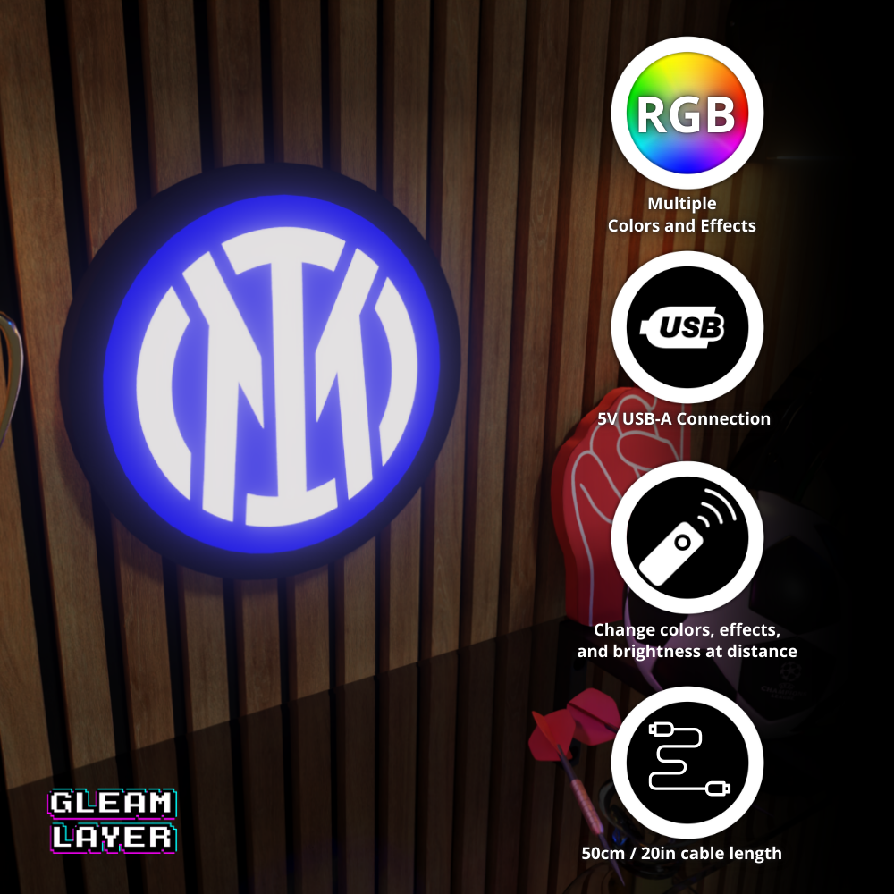 Inter Milan FC LED RGB light sign, Inter football logo lightbox, Italian Serie A illuminated wall sign, Nerazzurri fan collectible LED decor, San Siro man cave light, Inter Milan team LED wall display, Serie A merchandise LED sign, customizable Inter Milan LED lightbox, game day fan room decoration, Inter Milan supporters LED wall art