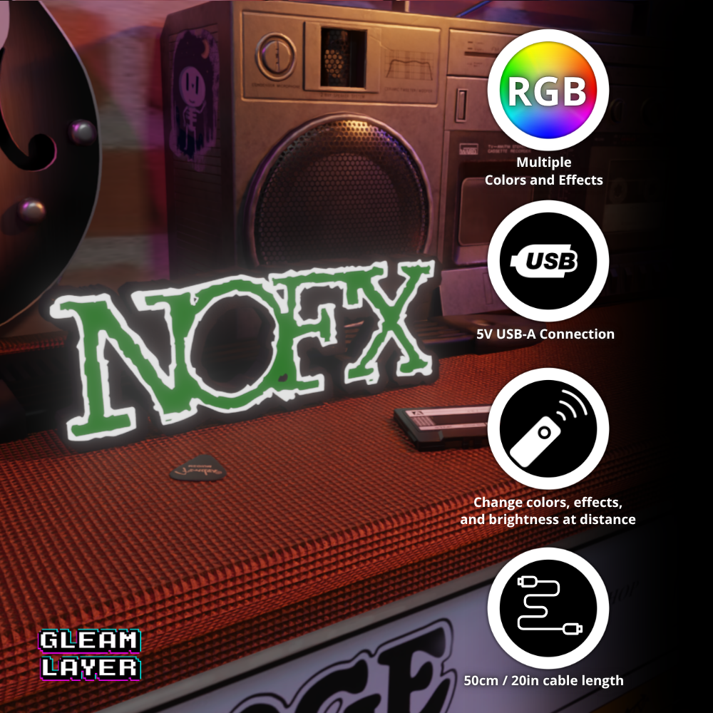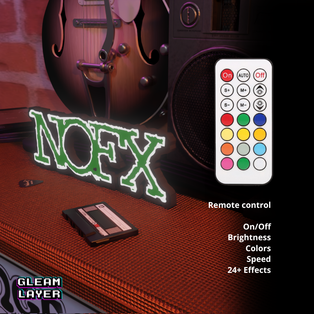 NOFX LED RGB light sign, NOFX logo illuminated sign, punk rock LED wall sign, NOFX band lightbox, NOFX fan room decor, punk music lover LED display, NOFX collectible light, band merchandise LED wall art, punk rock shop display light, gamer room LED accent, man cave punk light, customizable RGB NOFX sign, concert-inspired LED lightbox, Fat Wreck Chords band decor