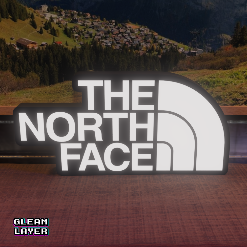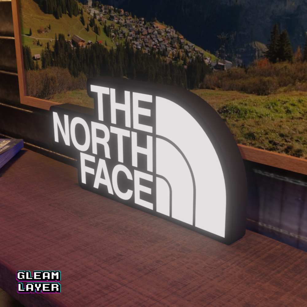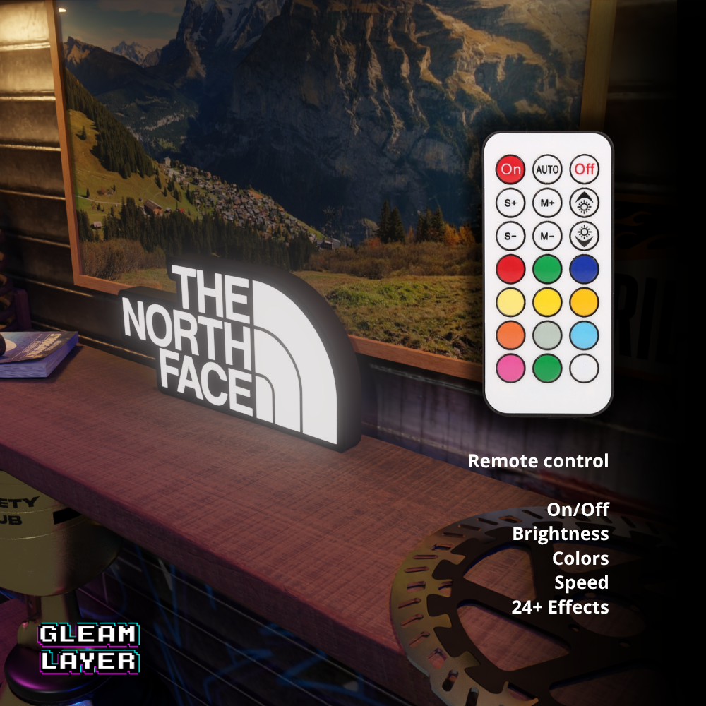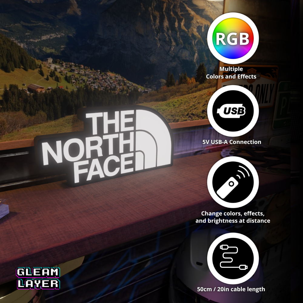 The North Face LED RGB Light Sign, The North Face lightbox, outdoor brand LED sign, adventure gear decor, hiking room light, camping-themed LED lamp, outdoor enthusiast gift, branded wall art, retail display light, store merchandising LED sign, mountain logo lightbox, minimalist home decor, activewear brand LED sign, jacket brand memorabilia, The North Face collector item, RGB mood lighting, gaming room accent, man cave wall light, home office branded decor, lifestyle brand LED sign
