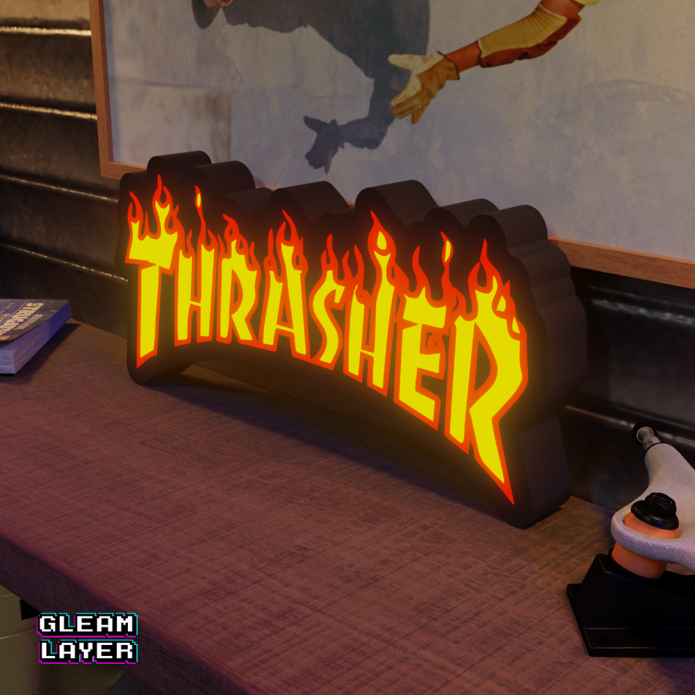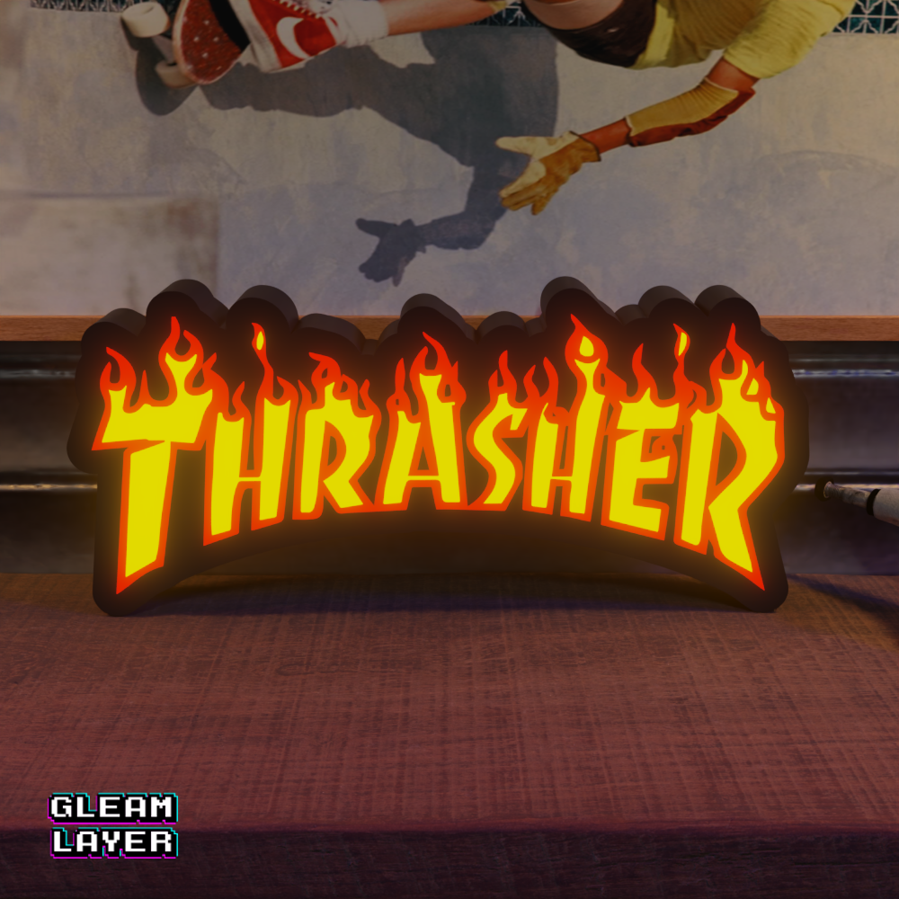 Ignite your space with the Thrasher Fire LED Lightbox Sign, a bold statement for skate enthusiasts!