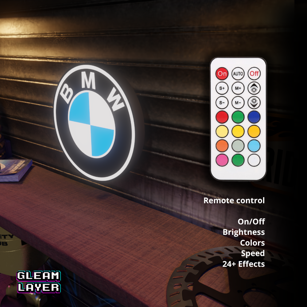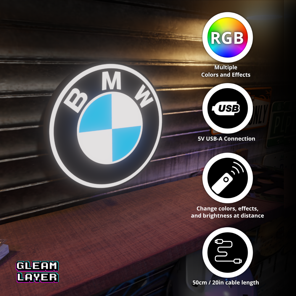 BMW Logo LED RGB Light Sign, Car Enthusiast Gift, Modern Garage Lighting, Sleek Automotive Wall Decor by Gleam Layer