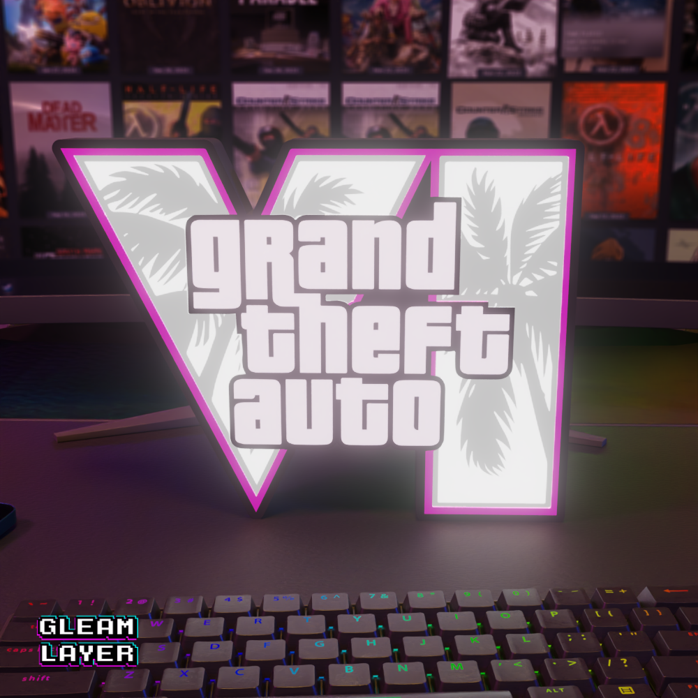 Power up your gaming setup with the GTA VI Logo Grand Theft Auto 6 LED Gaming Light Sign – the ultimate tribute to the next level of open-world chaos and style!