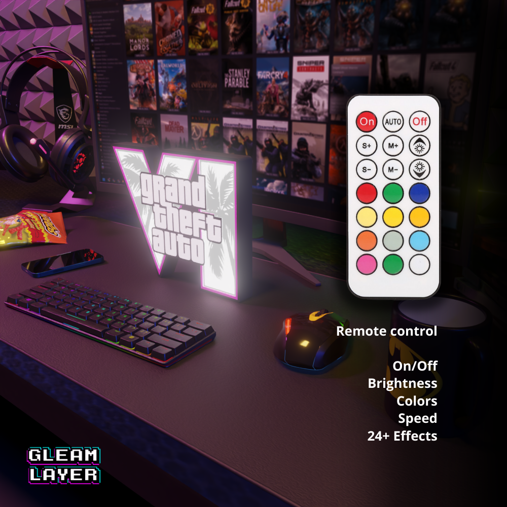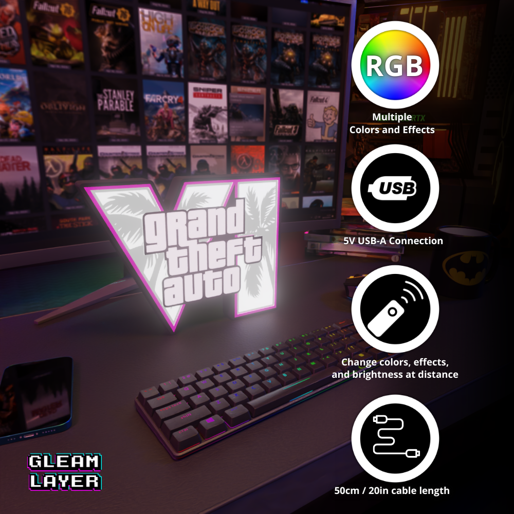GTA VI LED Light Sign, Grand Theft Auto 6 Decor, Gaming Display, Rockstar Games, RGB Gamer Lamp