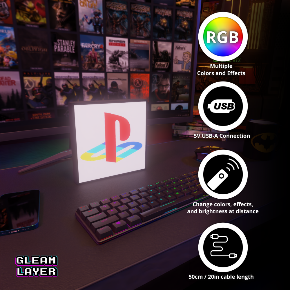 PlayStation Retro Logo Lightbox, Classic PS Logo Lamp, Gamer Room LED Decor, RGB Light Sign, Console Collectors Display, Nerd Cave Lightbox, Retro Gaming LED Sign, Gaming Setup Essentials, Illuminated Gamer Decor, Sony PlayStation Classic Gift, Gaming Wall Art, PlayStation Logo RGB Display, Gaming Lounge Light