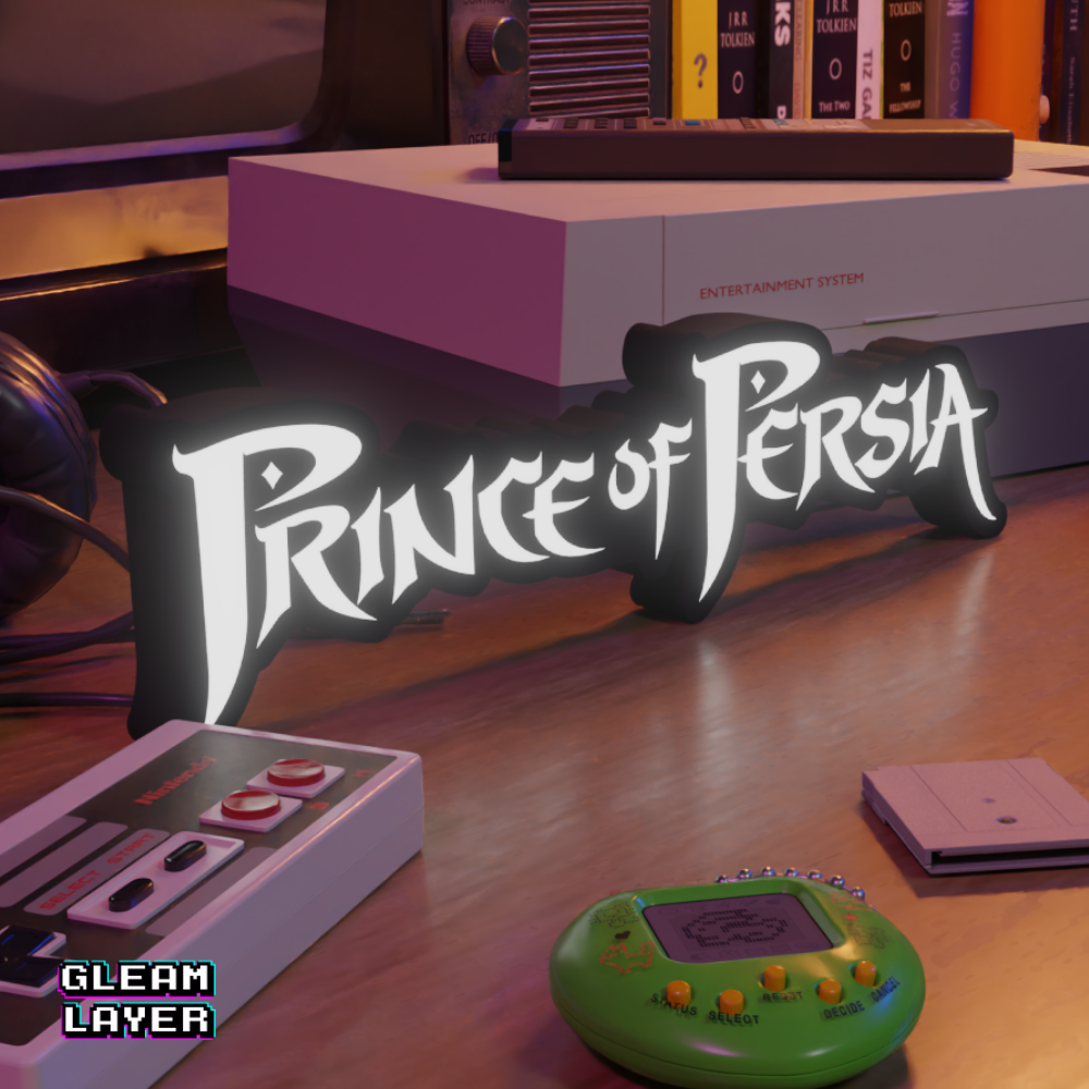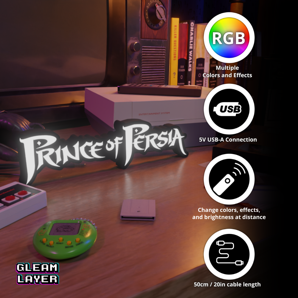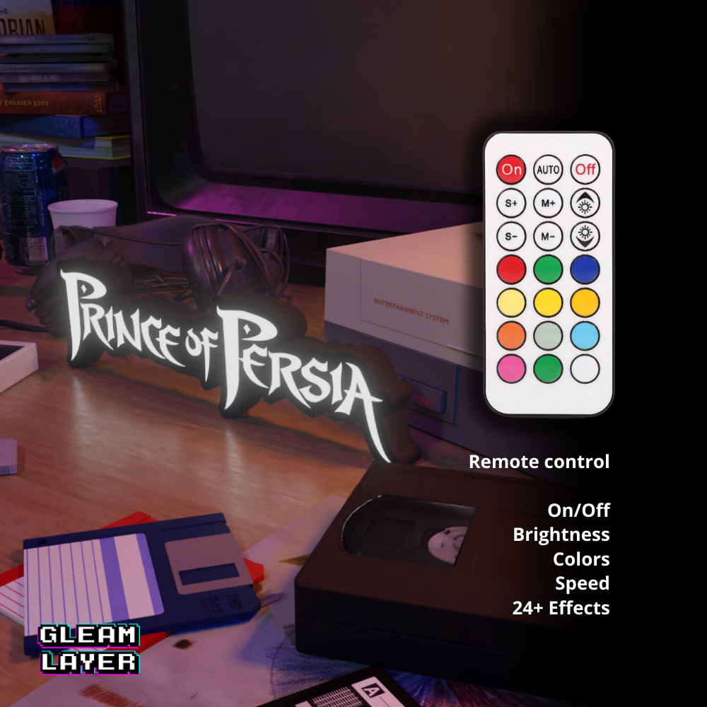 Prince of Persia LED RGB light sign, retro gaming lightbox, classic adventure game illuminated wall sign, Prince of Persia fan collectible LED decor, nostalgic gaming man cave light, retro video game LED display, Prince of Persia merchandise lightbox, customizable retro gamer LED sign, iconic video game wall decoration, old school platformer LED wall art