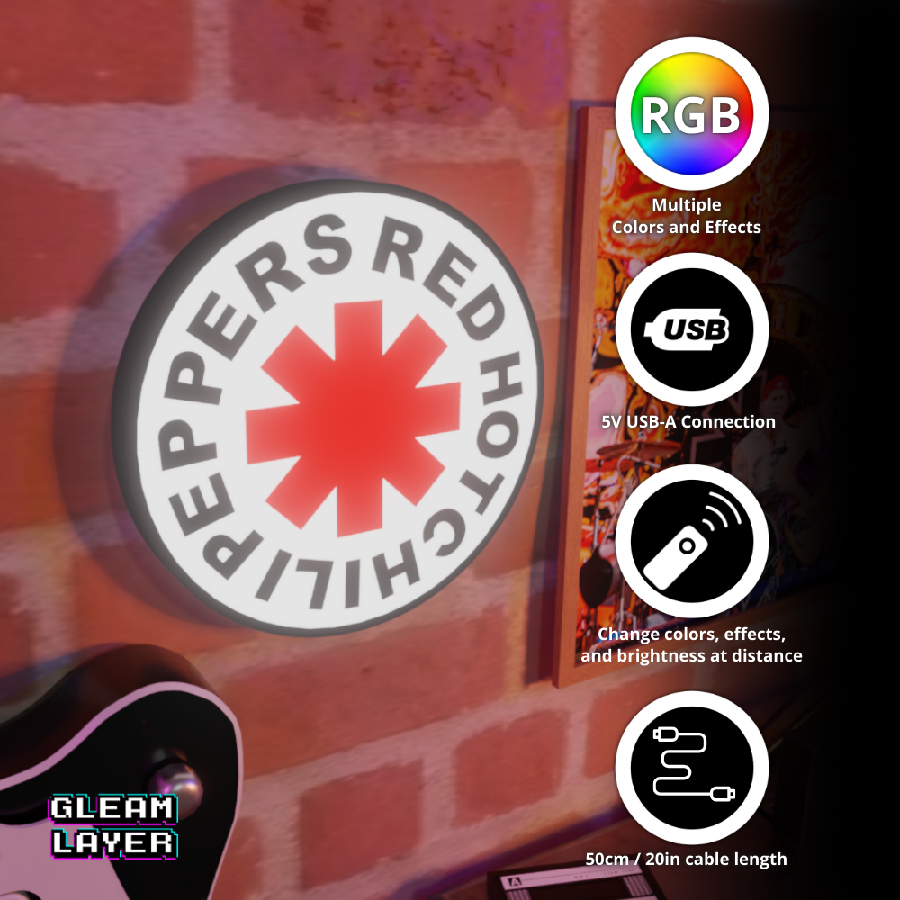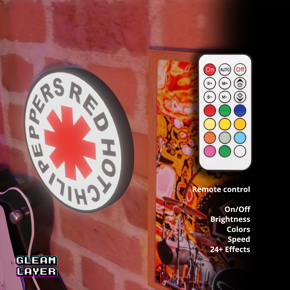 Red Hot Chili Peppers LED RGB light sign, RHCP band logo illuminated sign, rock band LED wall decor, music fan room LED sign, collectible band lightbox, RHCP merchandise LED display, man cave music light, concert-inspired LED wall art, customizable RGB Red Hot Chili Peppers sign, iconic band LED accent