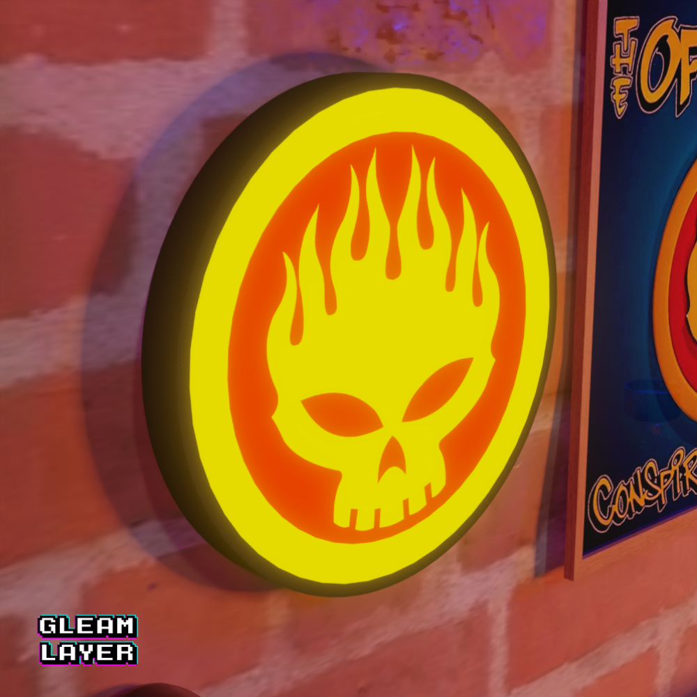 The Offspring Conspiracy of One Skull LED light sign, punk rock band illuminated logo, music fan RGB lightbox, collectible band wall decor, man cave music lighting, home studio LED display, rock memorabilia LED sign, punk rock fan collectible wall light