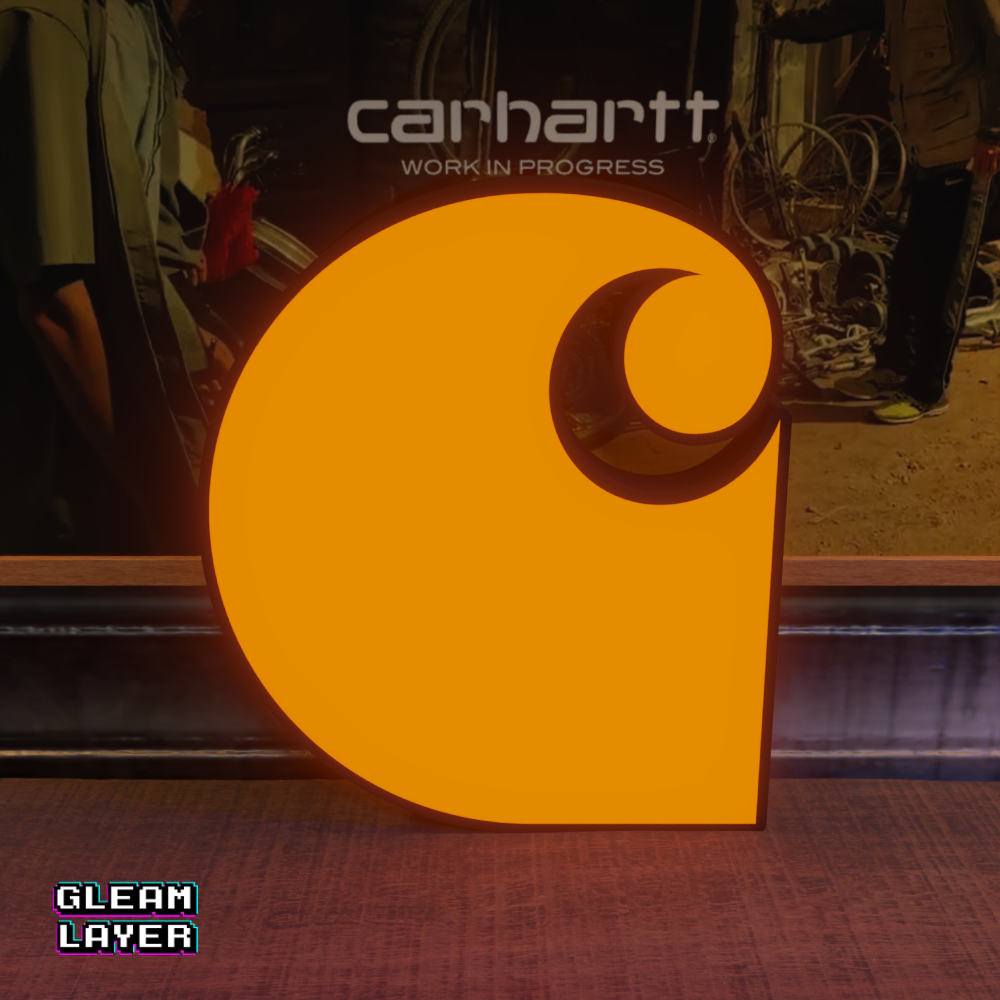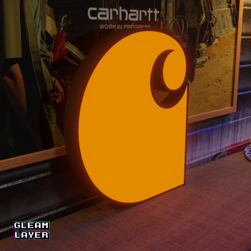 Carhartt LED sign, Carhartt logo LED wall light, streetwear LED lightbox, Carhartt illuminated brand sign, fashion brand LED decor, urban fashion room lighting, Carhartt apparel shop display, streetwear collectible LED light, workwear brand LED wall art, man cave Carhartt lightbox