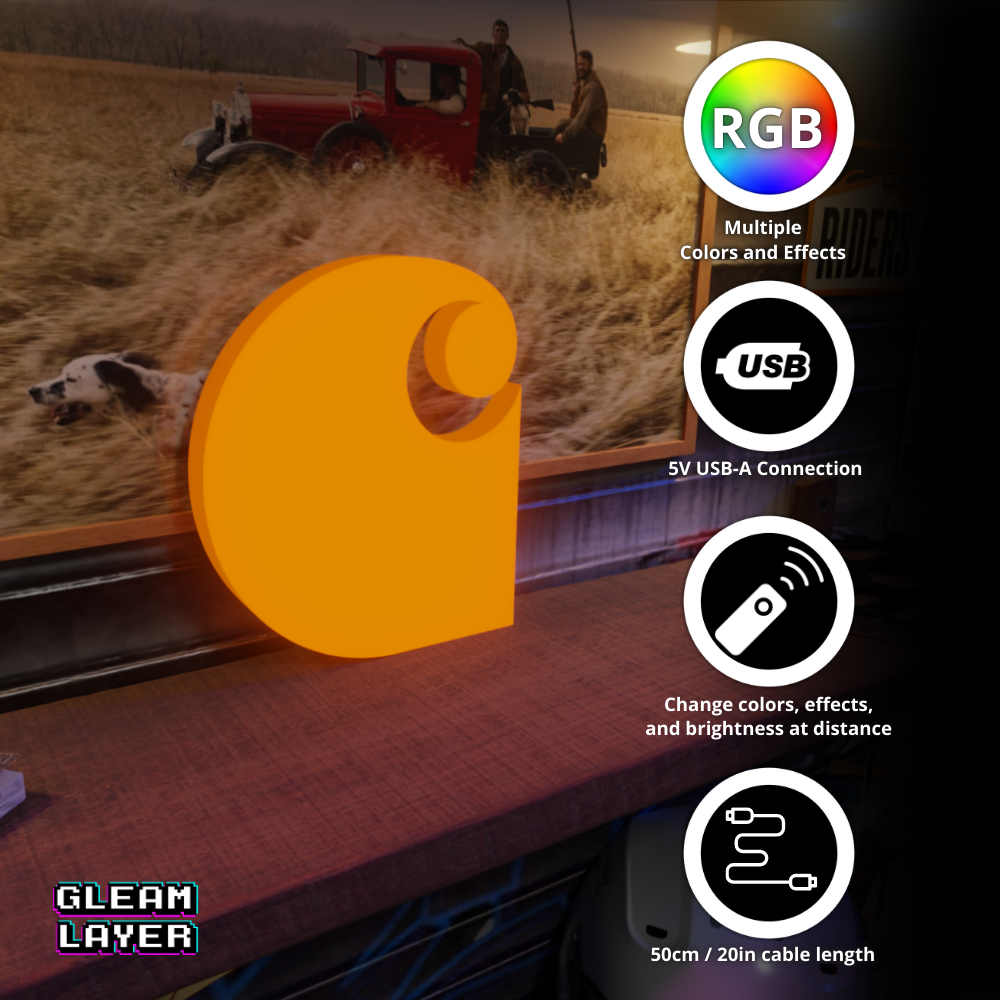 Light up your space with the Carhartt Logo LED RGB Light Sign — a bold statement for streetwear fans, collectors, and workwear-inspired room decor!
