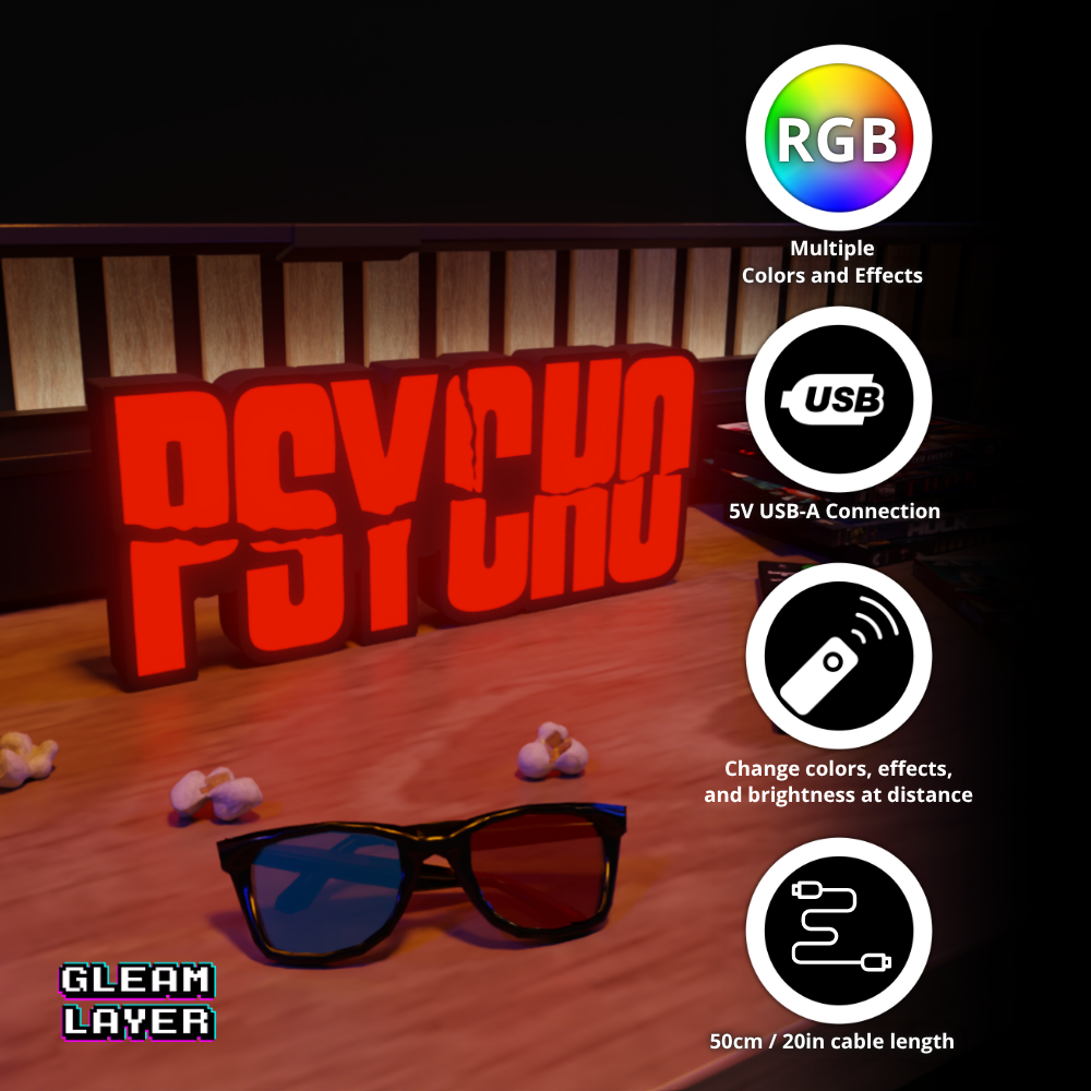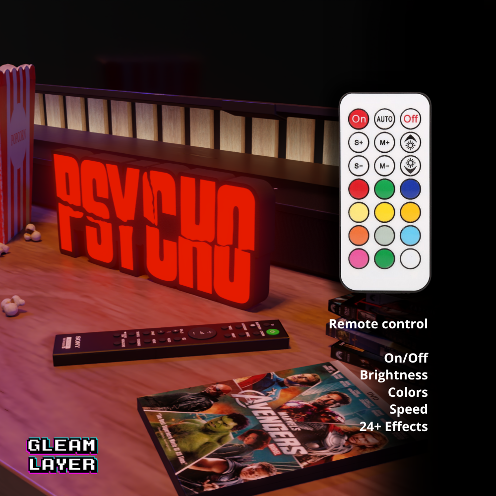 Psycho movie LED sign, Alfred Hitchcock decor, classic horror light, thriller film memorabilia, suspense cinema wall art, retro movie lightbox, man cave decoration, home theater collectible