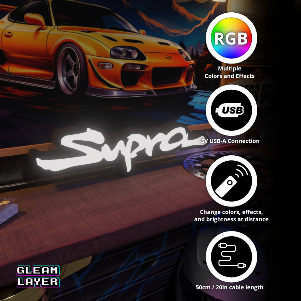 Toyota Supra LED Lightbox, RGB Car Light Sign, JDM Garage Decor, Gleam Layer Custom Sign, Racing Car Lightbox, Car Collector Gift, Japanese Car Wall Light, Supra Fan Gift, RGB Tuner Garage Decor, Street Racer Wall Sign