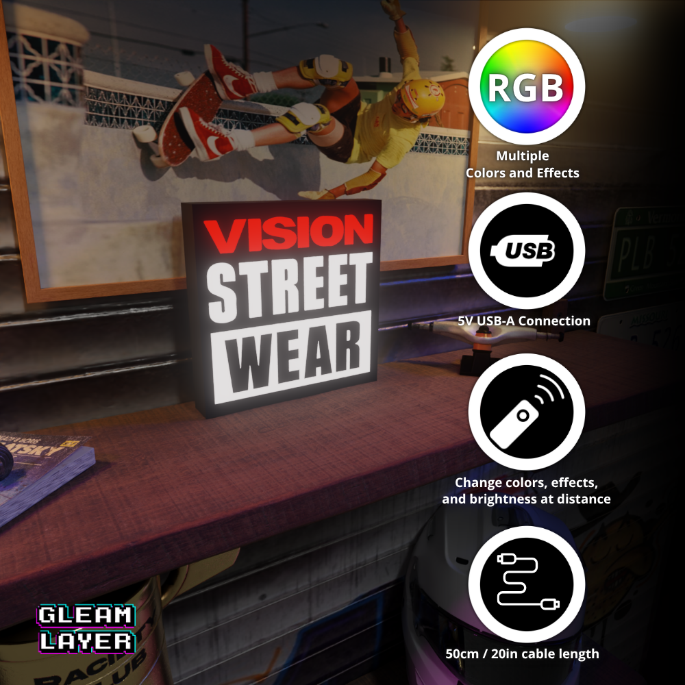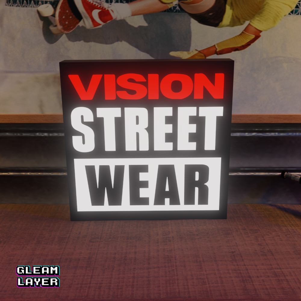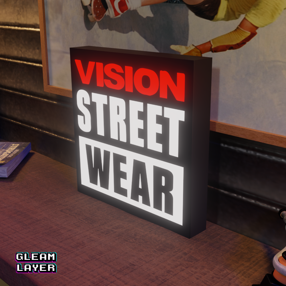 Vision Street Wear LED Lightbox, Retro Streetwear Lamp, Skater Room Decor, Urban Style RGB Sign, Street Culture LED Display, Collector’s Wall Art, RGB Light Sign for Teens, Hypebeast Desk Lamp, Classic Urban Fashion Lightbox, Cool LED Gamer Decor, Vision Brand Memorabilia, Streetwear Lightbox Gift